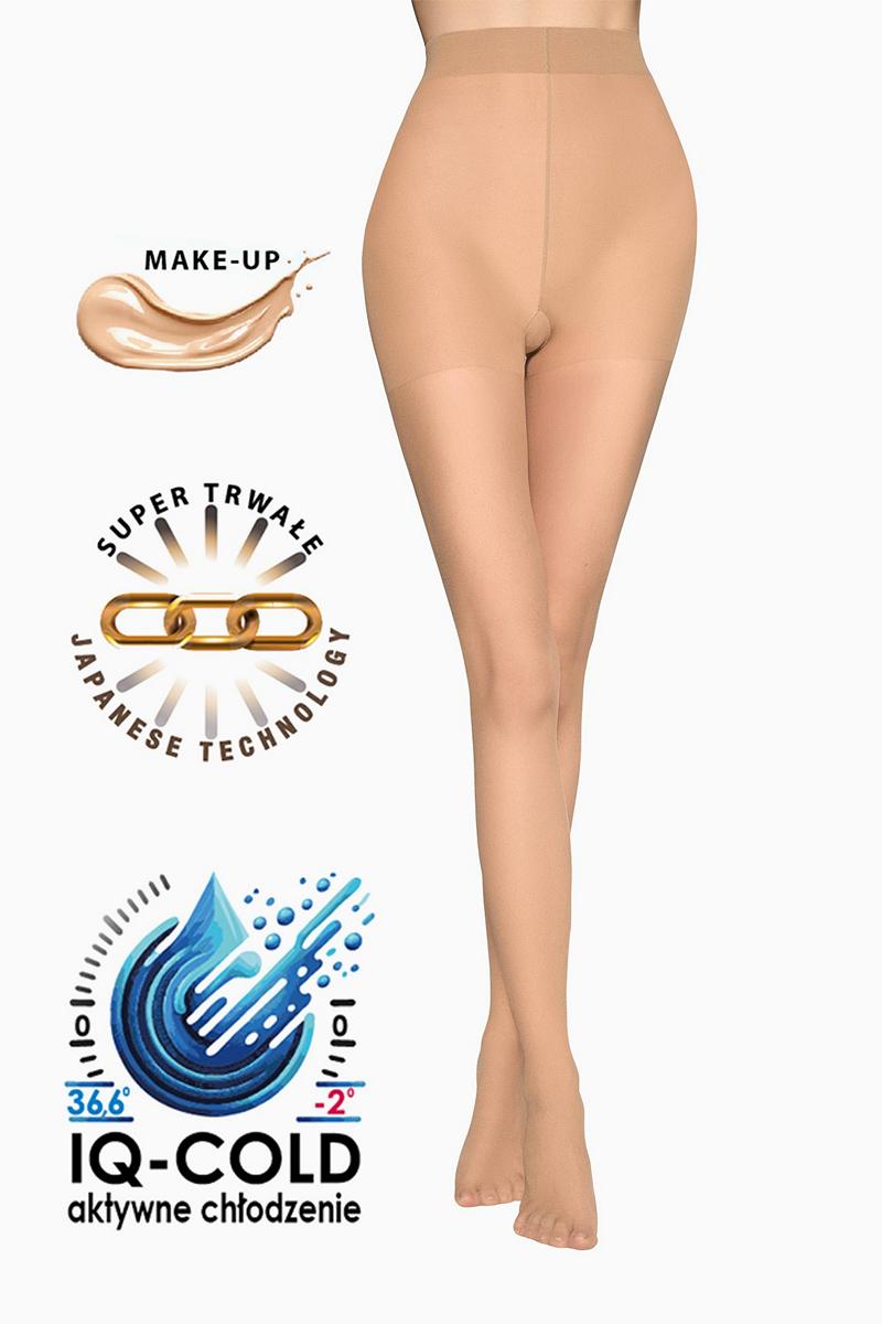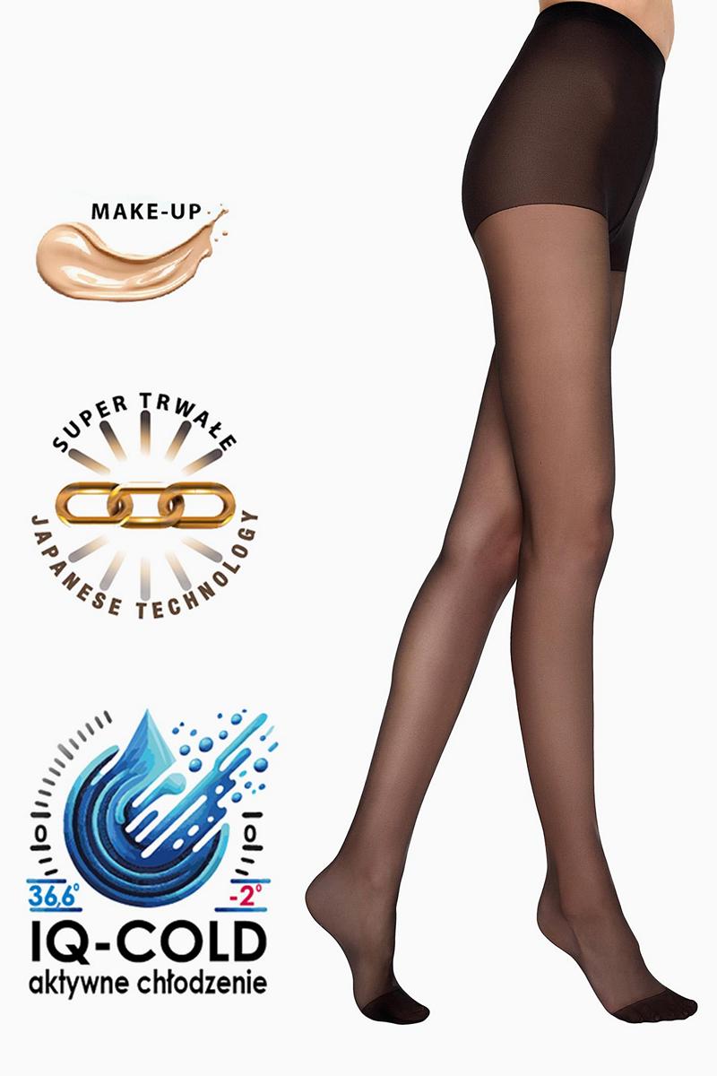 Колготки ICE 15 DEN, дающие эффект приятно охлаждающего и улучшающего кожу ощущения. Они скрывают недостатки, придают ногам естественный свежий блеск. Использование новейших японских технологий увеличивает на 100% прочность колготок от их повреждений. Система IQ-TEMP, применяемая к волокнам, обеспечивает активное охлаждение за счет более быстрого отвода тепла. Охлаждающий-освежающий эффект, идеально подходит для теплой погоды!