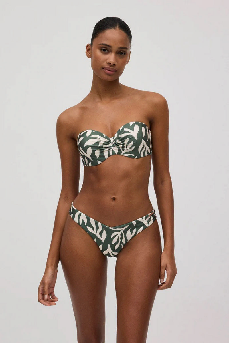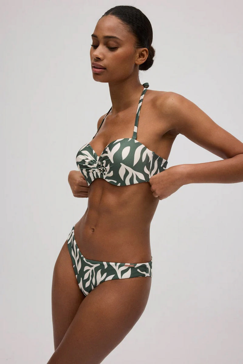 Купальный бюст бандо ILHA DE MEL 83097 от Ysabel Mora из серии Mix&Match. Чашка пуш-ап на кости. Застегивается на спине. Съемная регулируемая бретель через шею. Трусики бразильяно с V-образным поясом. Европейский размер соответствует российскому размеру!