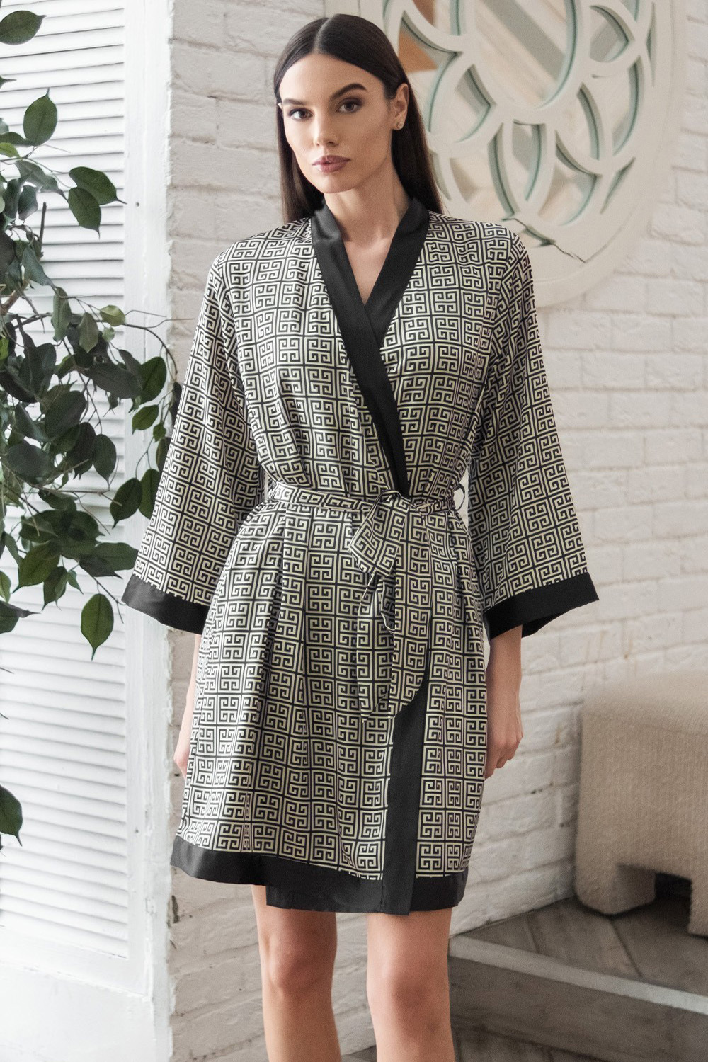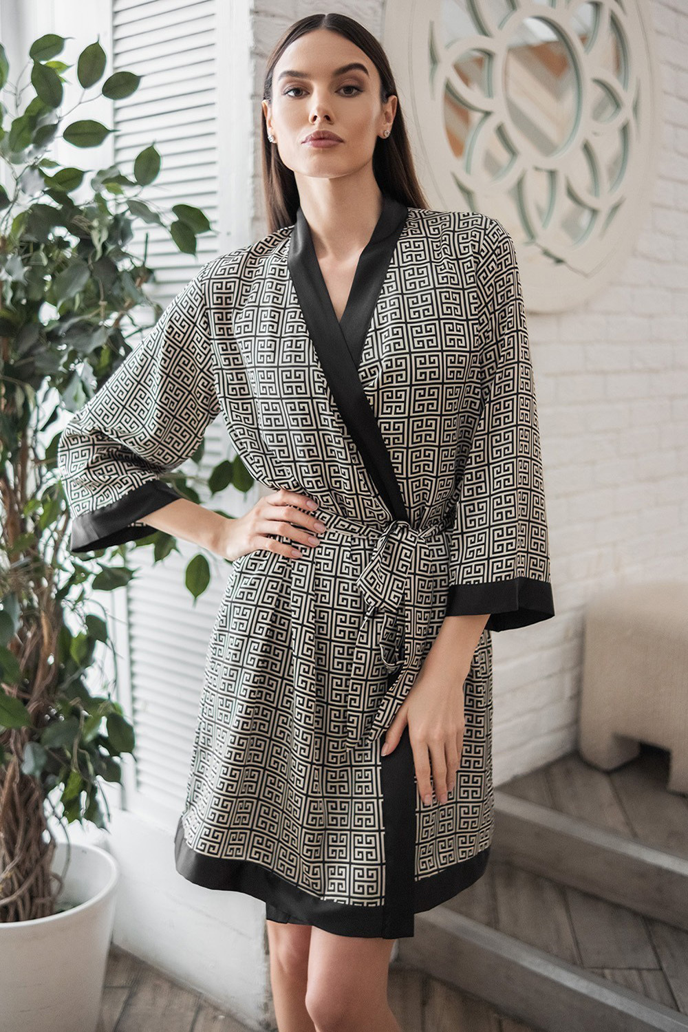 Короткий халат-кимоно Mia-Amore с широким рукавом длиной 3/4 . Халат выполнен из смесового шелка с однотонной отделкой. По бокам обработаны карманы.