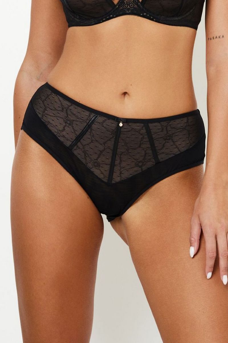 Трусы KRISTI с высокой посадкой от европейского производителя Subtille. Модель выполнена из сетки с вышивкой и двойного микротюля. Хлопковая ластовица.