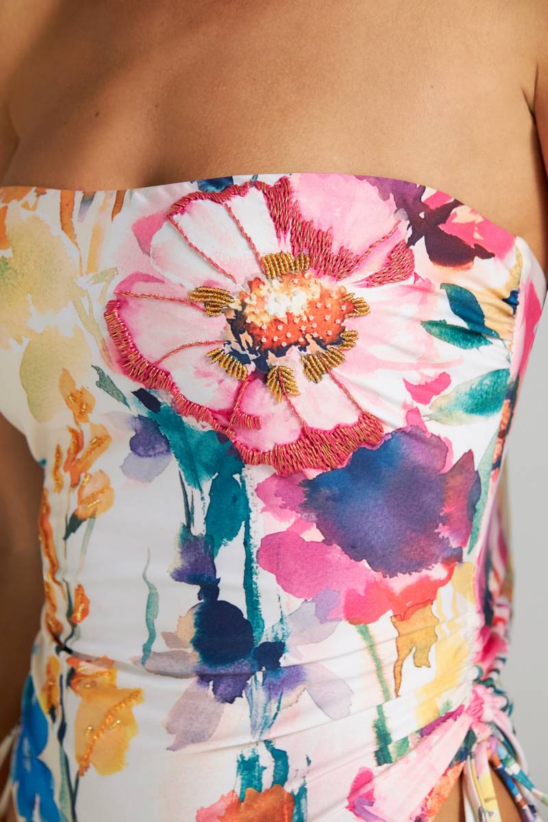 Сплошной купальник от колумбийского бренда Cosita Linda. Модель выполнена из высококачественной ткани с эксклюзивными дизайнерскими аксессуарами ручной работы, на подкладе. Чашечки со съемными поролоновыми вкладышами, а так же у изделия съемные регулируемые бретели. Бренд уделяет большое внимание защите природы, поэтому все свои изделия производит из современной переработанной эко ткани по технологии Less Water.