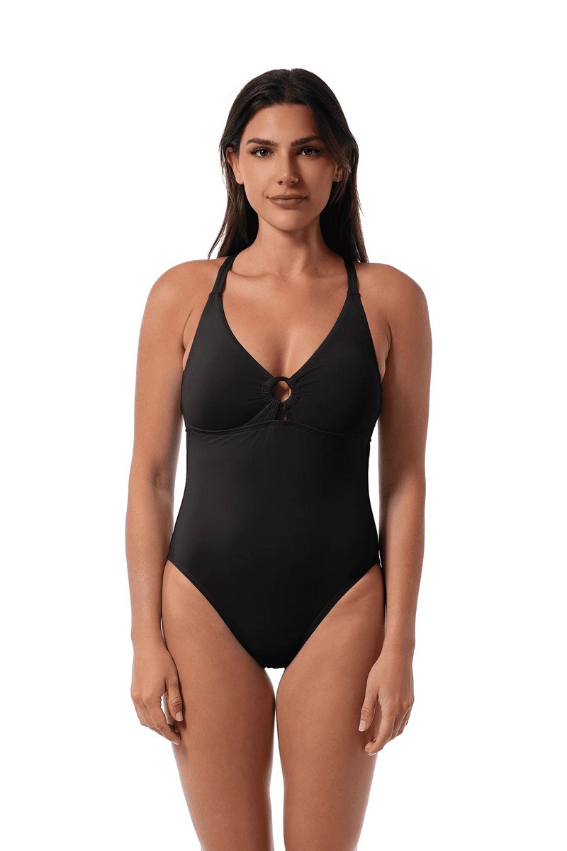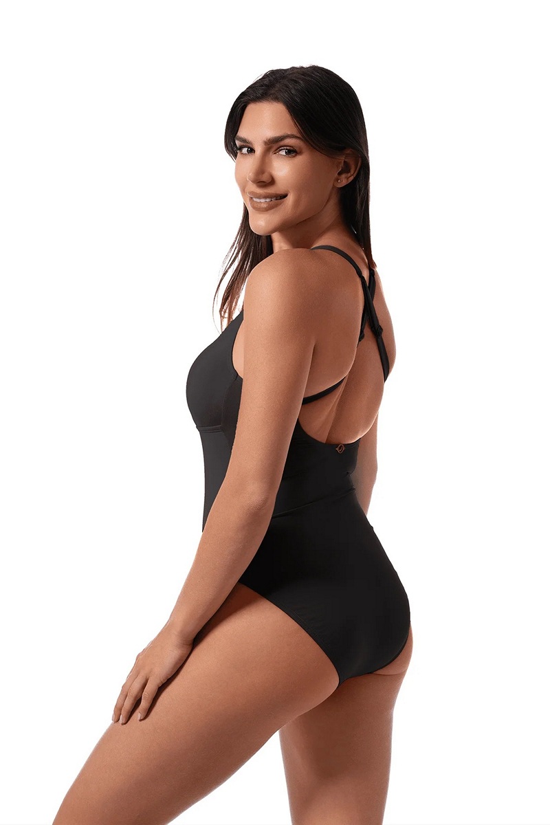 Купальник сплошной от легендарной американской марки со 100 – летней историей. Изготовлен из супер качественного солнцезащитного материала UPF 50 по уникальной технологии «лепки тела». Чашка из тонкого съемного поролона. Особенный крой помогает создать стройный силуэт. Спереди на подкладе из микросетки. Роскошная гладкая мягкая ткань. V-образный вырез декольте. Несъемные перекрещенные регулируемые бретели для индивидуальной подгонки. Идеально подходит для прогулок на пляже или у бассейна, позволяя вам чувствовать себя уверенно и шикарно.