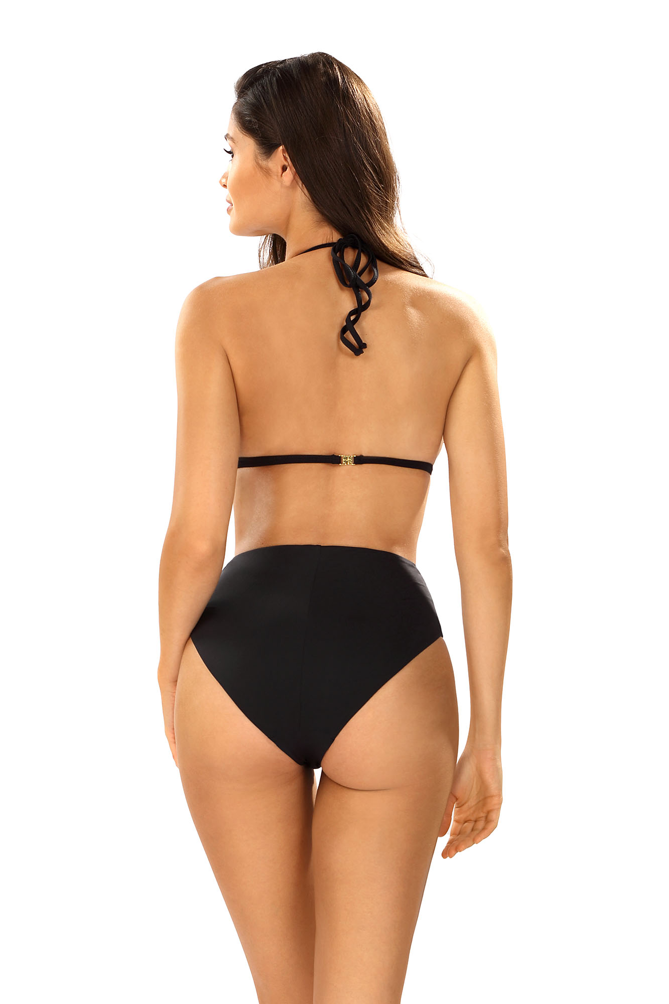 Раздельный купальник L1163/3 от европейского производителя Lorin. Поролоновая бескостная чашка в тонкими подвижными бретелями в зоне декольте. Завязки на шее и застежка на спине. Трусики слип на стрейч подкладе с высокой линией талии.