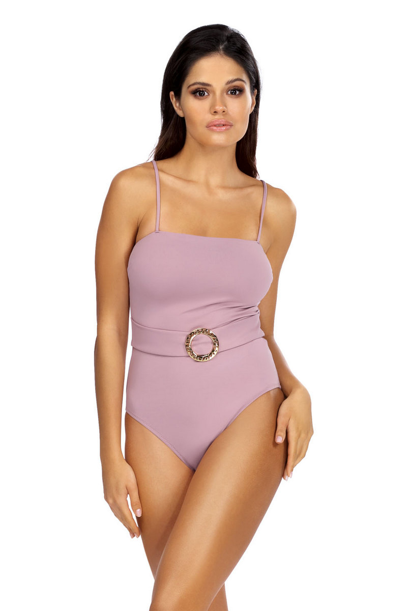 Сплошной купальник L4417/1 от европейского производителя LORIN. Мягкая бескостная чашка и несъемные тонкие бретели. Талия декорирована широким поясом с пряжкой.