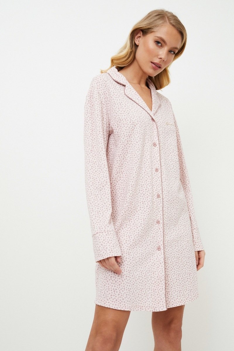 Элегантная ночная рубашка Lara с длинными рукавами, V-образным вырезом горловины и отделкой на пуговицах - это неподвластная времени вещь. Она изготовлена из мягкой ткани из смеси хлопка и модала очаровательного пастельно-розового цвета, украшенного розовыми сердечками. Ночная рубашка украшена розовой окантовкой по вороту, передней части и рукавам. Нагрудная часть украшена золотой вышивкой "Amor", которая придает дополнительную элегантность этому и без того восхитительному наряду. Этот ансамбль сочетает в себе стиль и комфорт для безмятежных ночей. Изделие выполнено из текстильного хлопка с модалом.