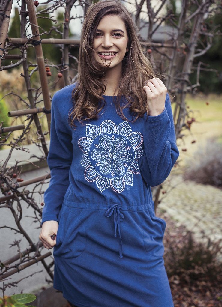 Сорочка женская для дома и отдыха LHD 008 18/19 от европейского производителя KEY. Удобный фасон-трапеция с завязками на поясе и прорезными карманами. Модель из мягкого и теплого микрофлиса.