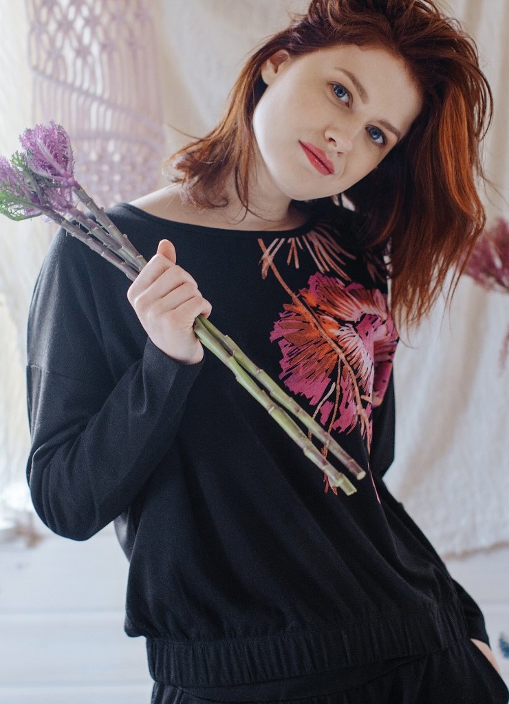 Костюм женский для дома и отдыха LHS 902 от европейского производителя KEY. Кофта на резинке по нижней кромке. Брюки приталенного кроя, с карманами. Материал футер без начеса.