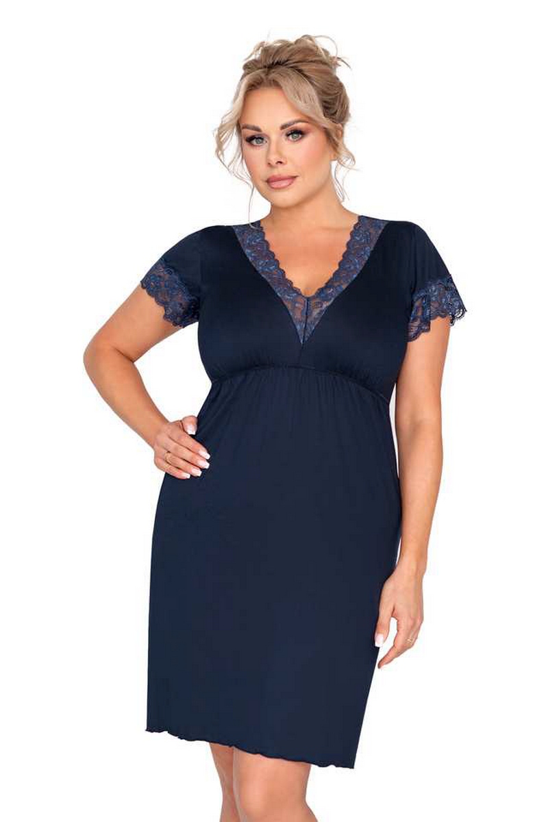 Нежная вискозная сорочка MARIZA PLUS от европейского производителя Donna. Модель с кружевным вырезом в зоне декольте и коротким рукавом. На сайте указан европейский размер! К европейскому размеру +6!