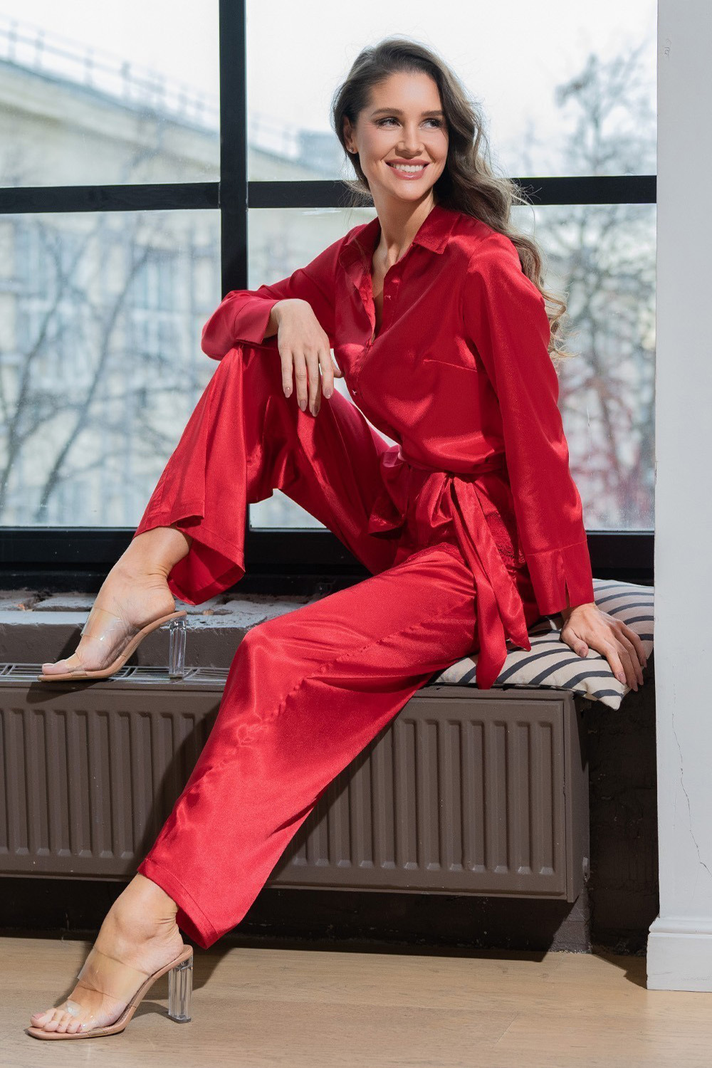 Элегантный комплект Mia-Amore состоящий из жакета с длинным рукавом и широких брюк. Комплект выполнен из искусственного шелка с блеском и кружевными вставками по низу жакета. Линию талии можно подчеркнуть за счет широкого пояса, который идет в комплекте.