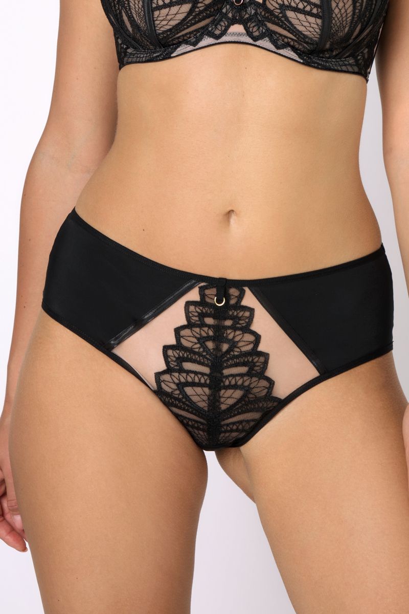 Трусы бразильяно MELISSA от европейского производителя Subtille. Модель выполнена из тюля, микрофибры и кружева. Хлопковая ластовица. Спереди декоративный элемент.