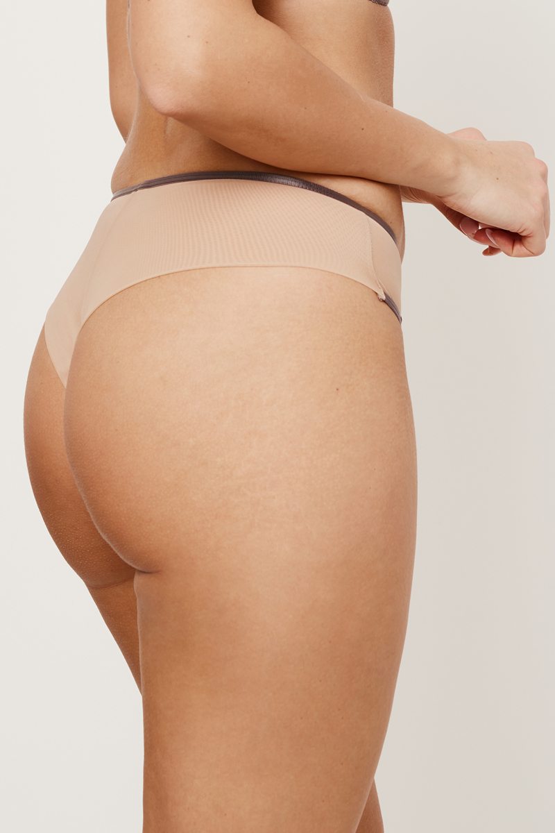 Трусы бразильяно Mini NAOMI MOCCA от европейского производителя Subtille. Модель выполнена из нежного микротюля с вышивкой, задняя часть - из двойного микротюля. Хлопковая ластовица.