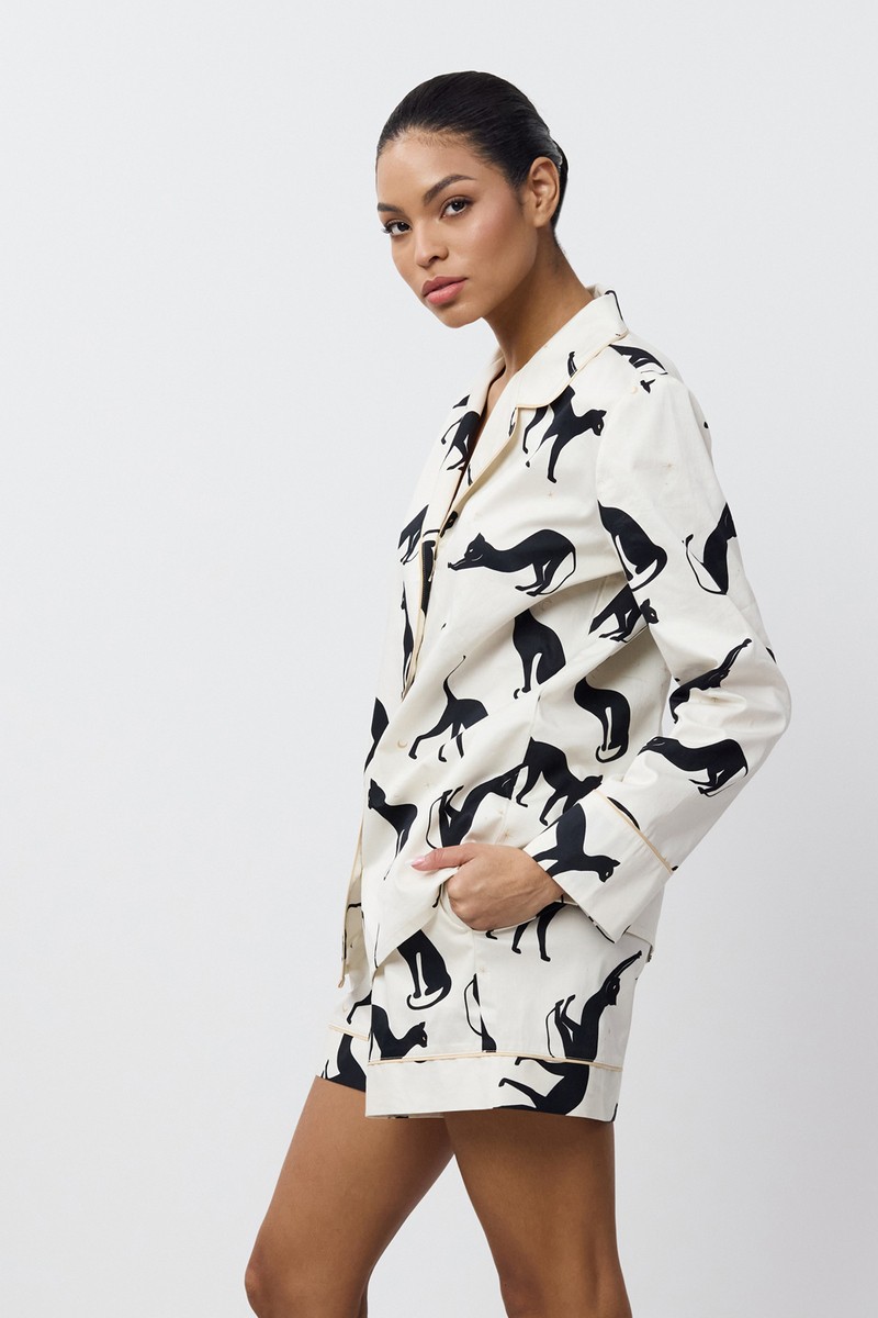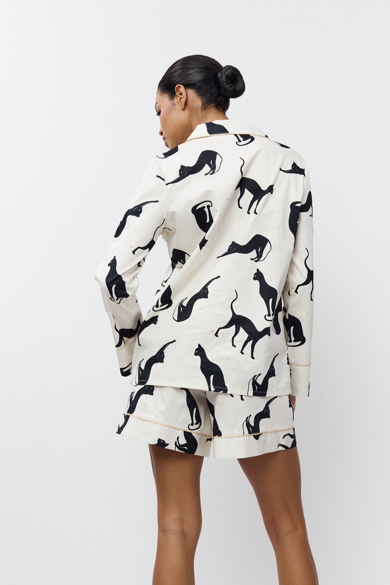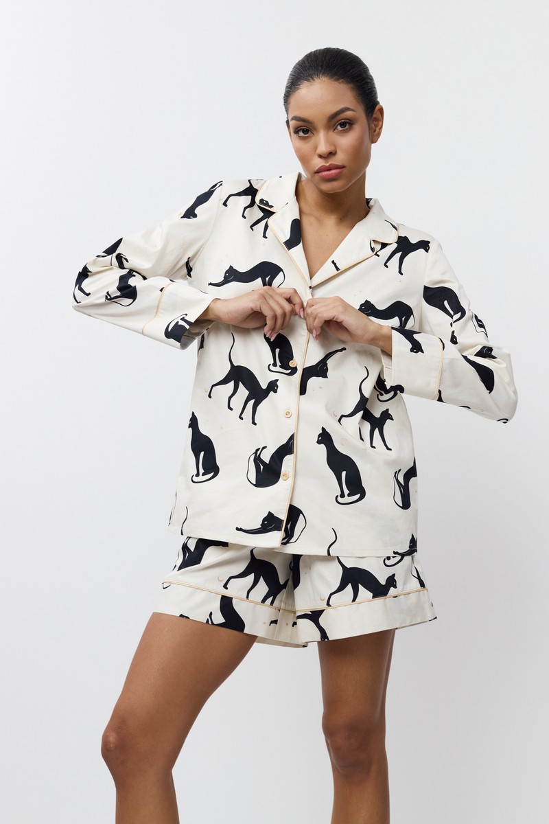 Пижама женская с шортами NYRA для максимального комфорта и расслабления. Выполнена из текстильного хлопка. Рубашка на пуговицах, с отложным воротником, рукава длинные. Шорты короткие, свободные, комфортной посадки, по бокам карманы, пояс эластичный с завязкой. Окантовка добавляет изысканности изделию. Пижама станет вашим идеальным спутником во время сна.