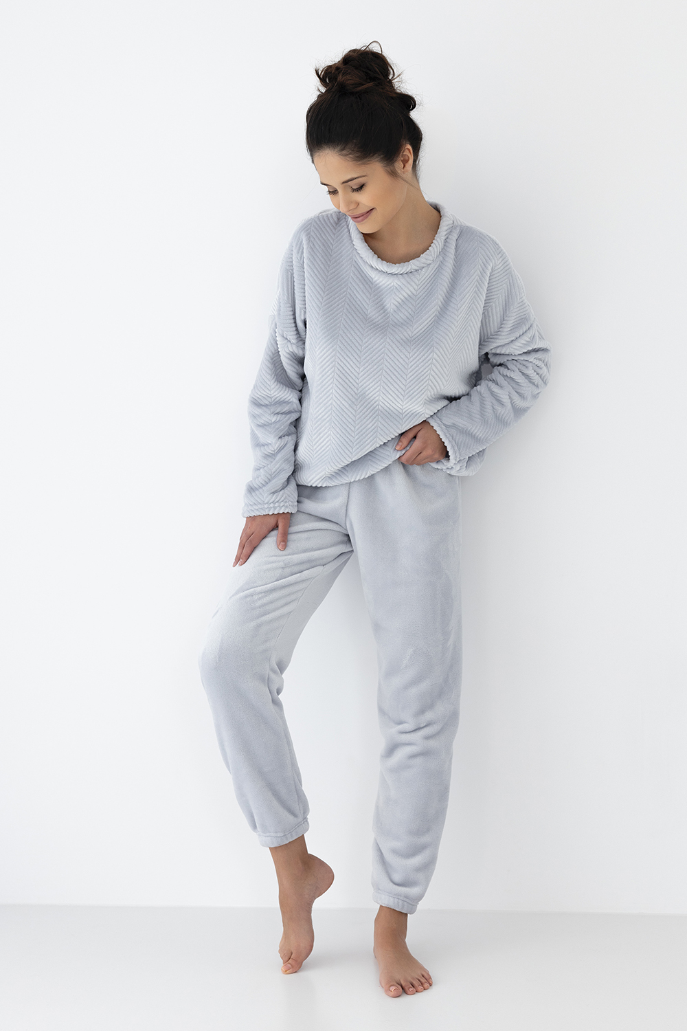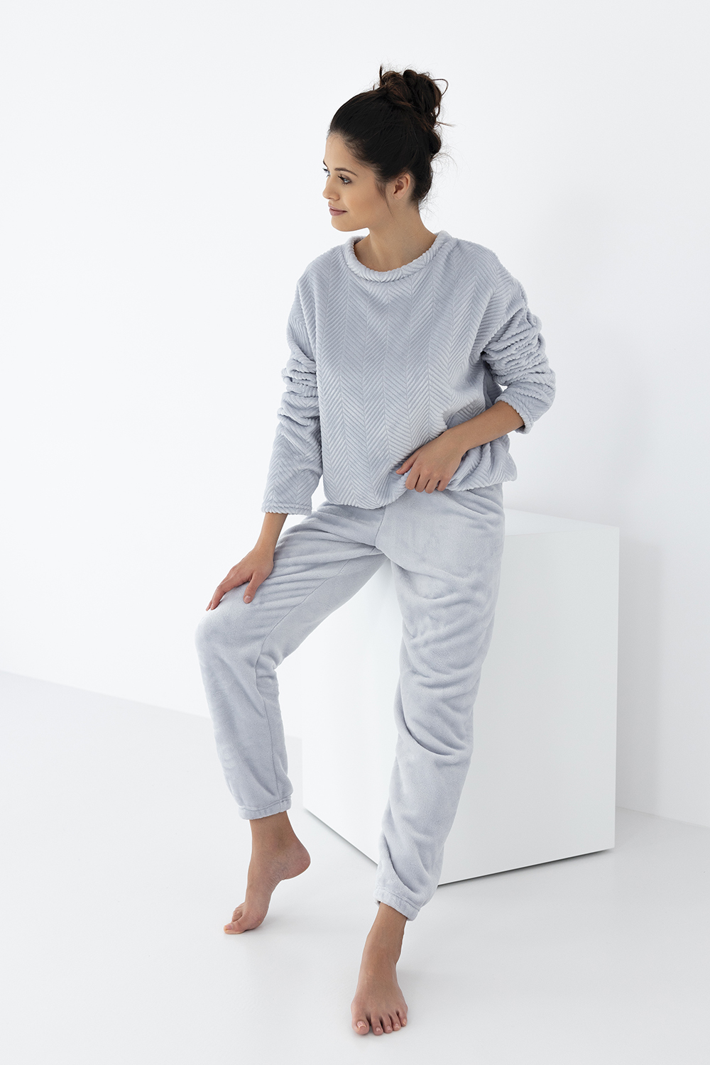 Пушистая пижама Esme состоит из свитшота и брюк с манжетами. Свитшот свободный однотонный. Брюки зауженные к низу, на широкой резинке. Идеальный вариант не только для сна, но и для домашнего отдыха.