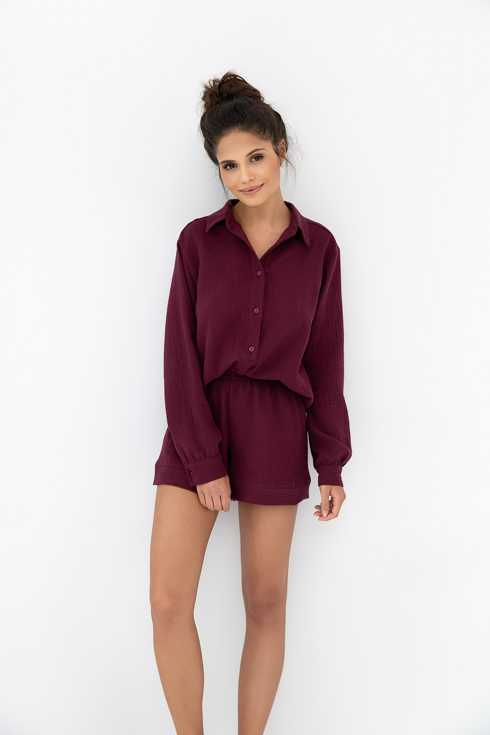Интересный домашний комплект Ivory состоит из рубашки на пуговицах и шорт. Рукава оформлены манжетами. Идеальный вариант не только для сна, но и для домашнего отдыха.
