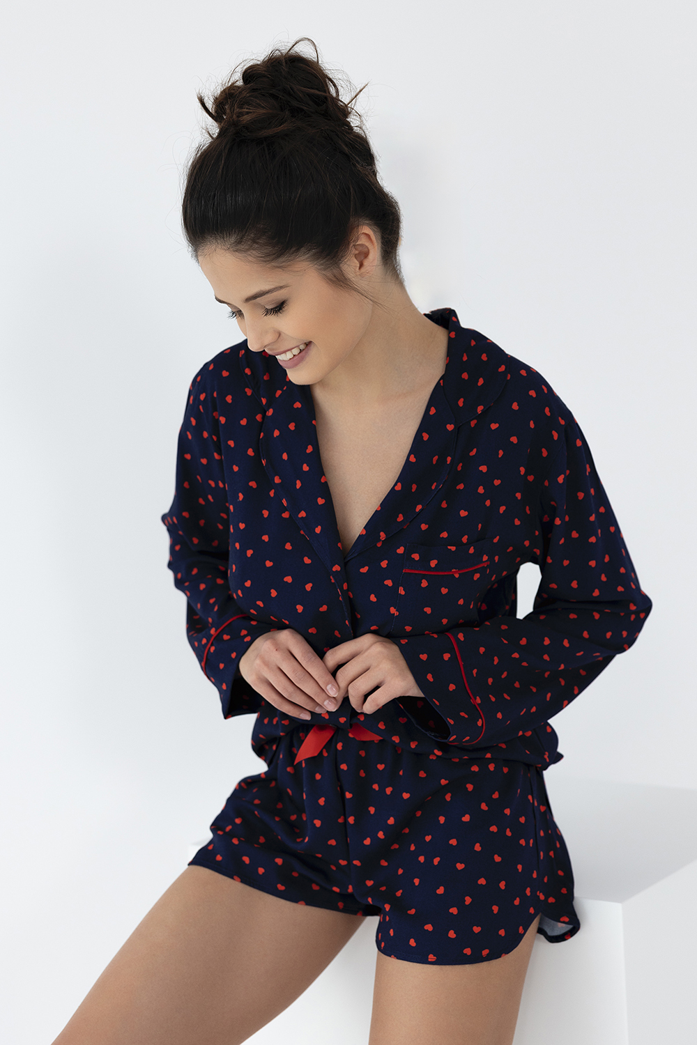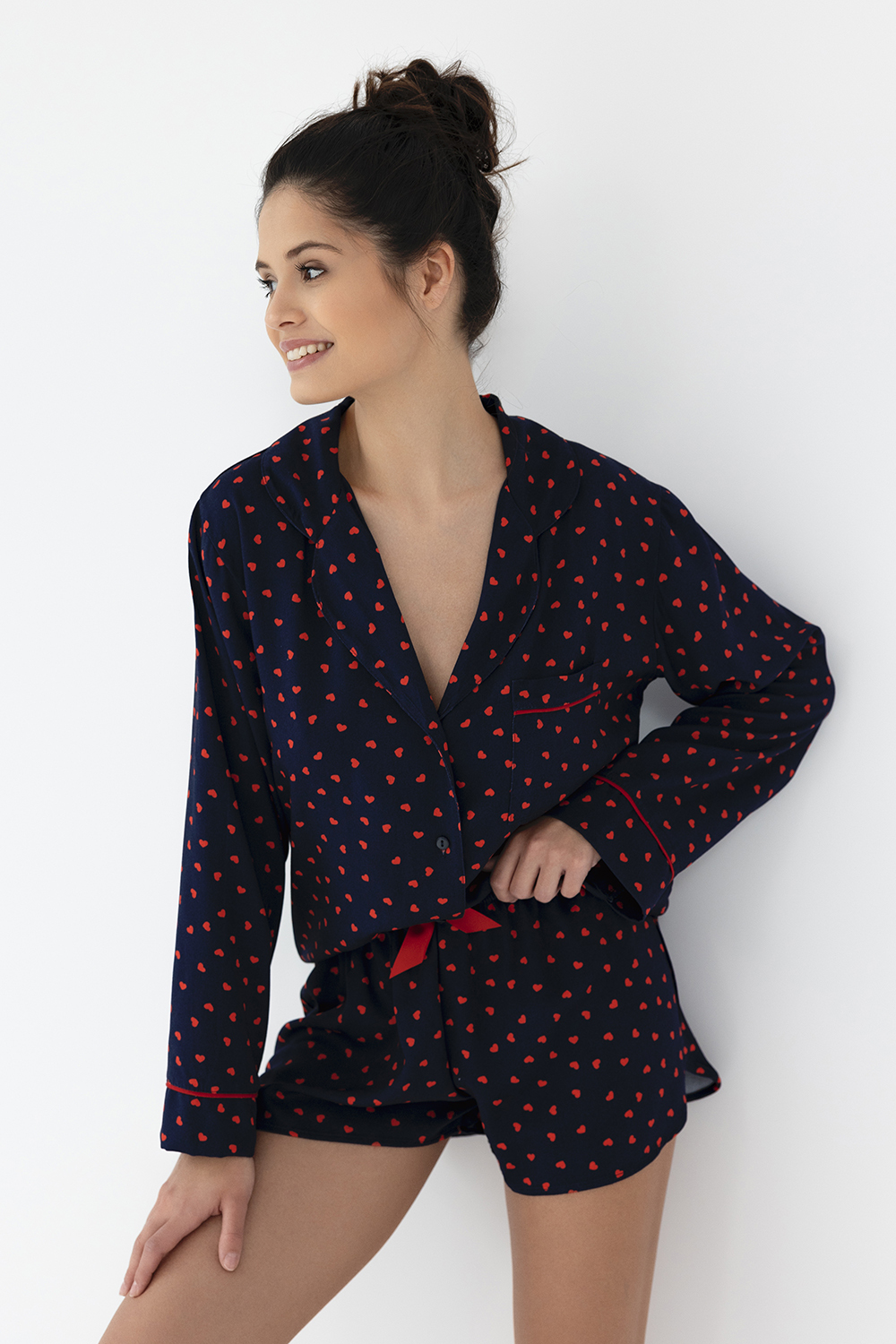 Пижама Maisie состоит из рубашки и шорт. Рубашка ссвободного кроя. Шорты на широкой резинке, декорированы миниатюрным бантиком. Идеальный вариант не только для сна, но и для домашнего отдыха.