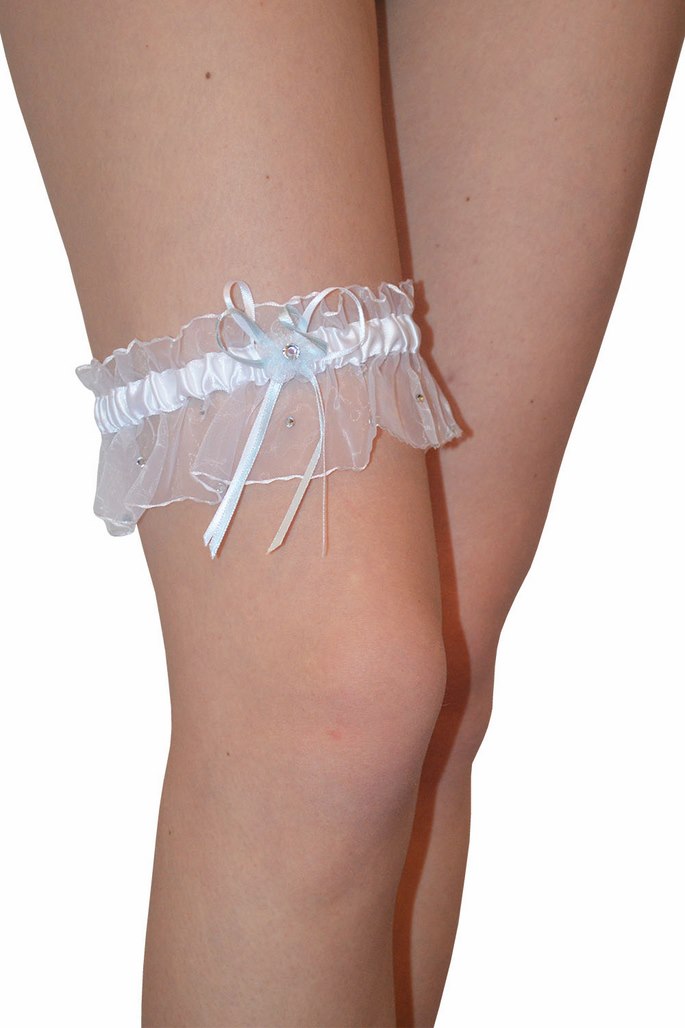 Очаровательная подвязка на ногу с декоративным атласным бантиком.