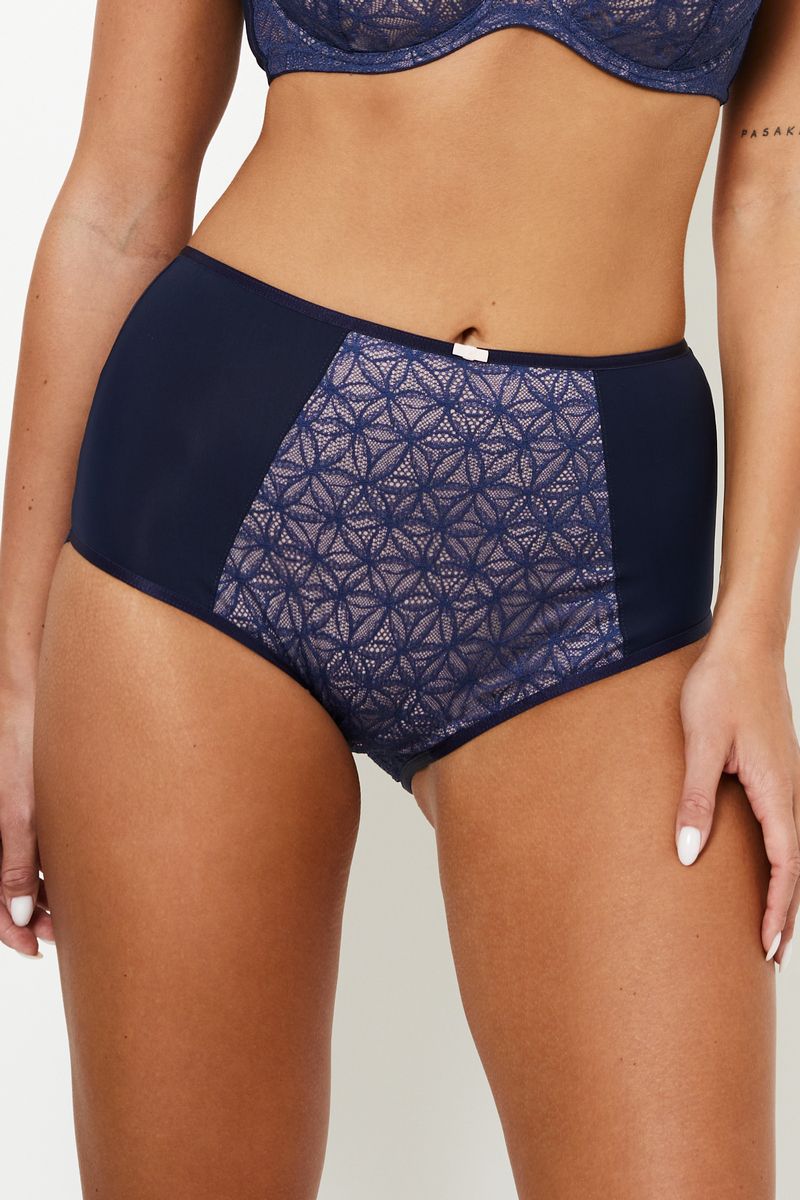 Трусы RIMINI с завышенной посадкой от европейского производителя Subtille. Модель выполнена из кружева и микрофибры. Хлопковая ластовица.