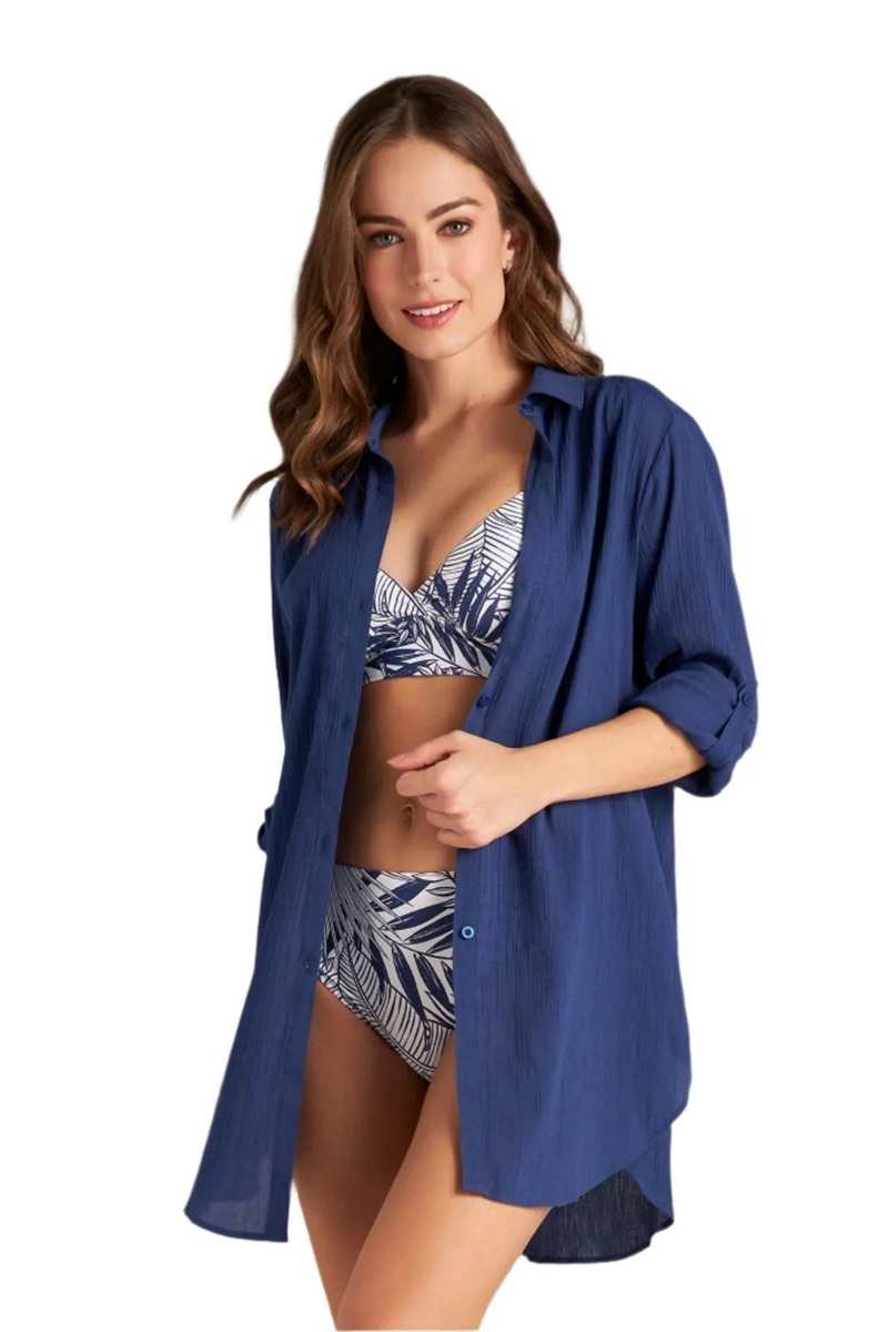 Пляжная рубашка свободного кроя с длинными рукавами и пуговицами. Выполнена из гофрированного хлопка, что обеспечивает отличную защиту от солнца. Превосходное дополнение к купальнику, которое подчеркнет вашу индивидуальность.