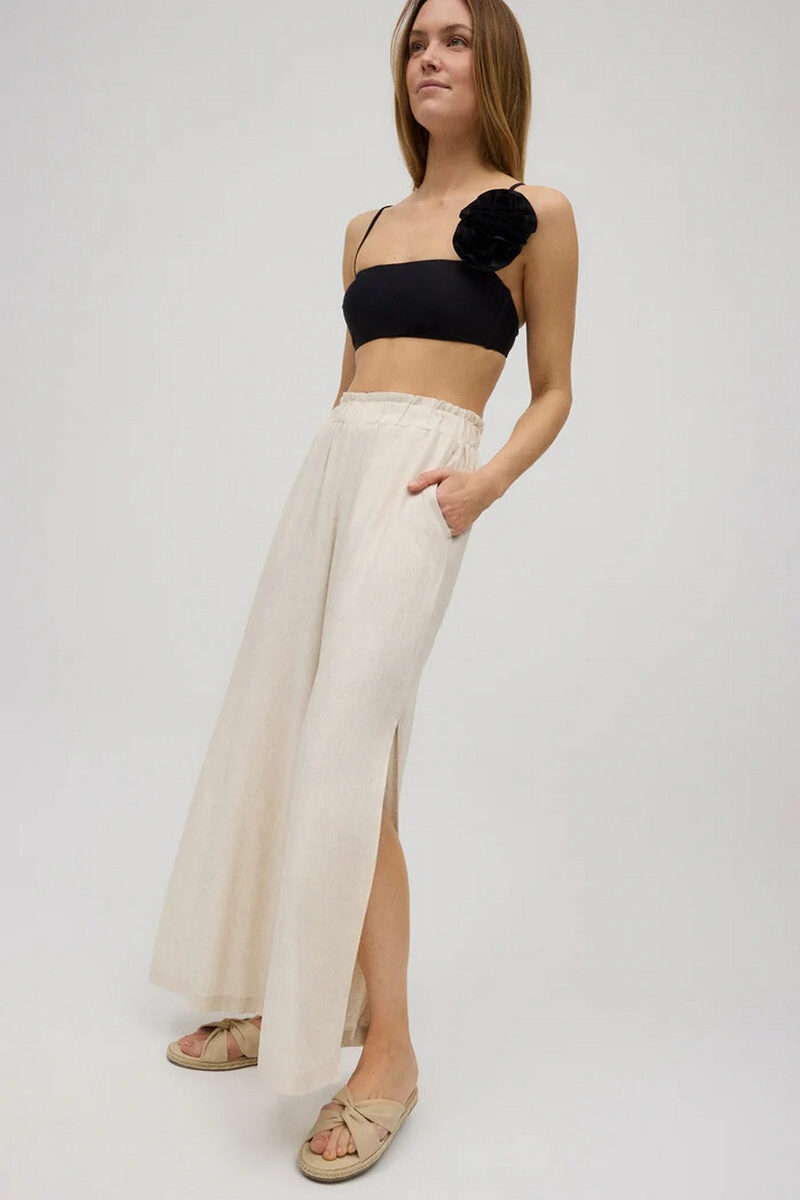Пляжные штаны SAMAY 86171 от Ysabel Mora. Выполнены из натурального материала, приятные к телу. Пояс на эластичной резинке. По бокам разрезы и карманы. Подходит рубашка арт.86168.