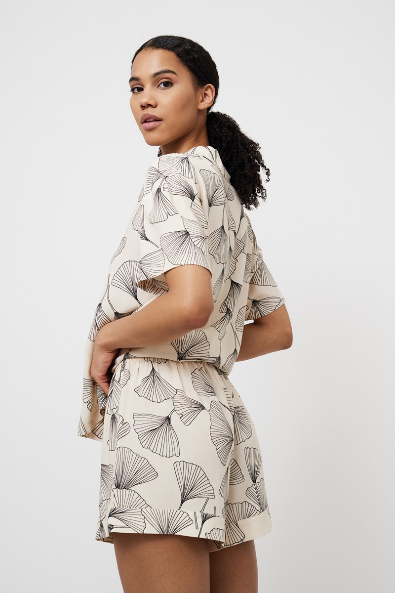Представляем вашему вниманию пижаму с шортами Seashell — идеальное сочетание элегантности и комфорта. Пижама изготовлена из лёгкой вискозы в цветовой гамме с цветочным принтом для создания великолепного и шикарного образа. Рубашка на пуговицах с короткими рукавами и острым V-образным вырезом. Боковые разрезы добавят стильный штрих к вашей домашней одежде. Широкие шорты с тонким эластичным поясом и регулируемой кулиской на талии обеспечат идеальную посадку. Короткая пижама Seashell, идеально подходящая для отдыха, позволит вам расслабиться в изысканной обстановке.