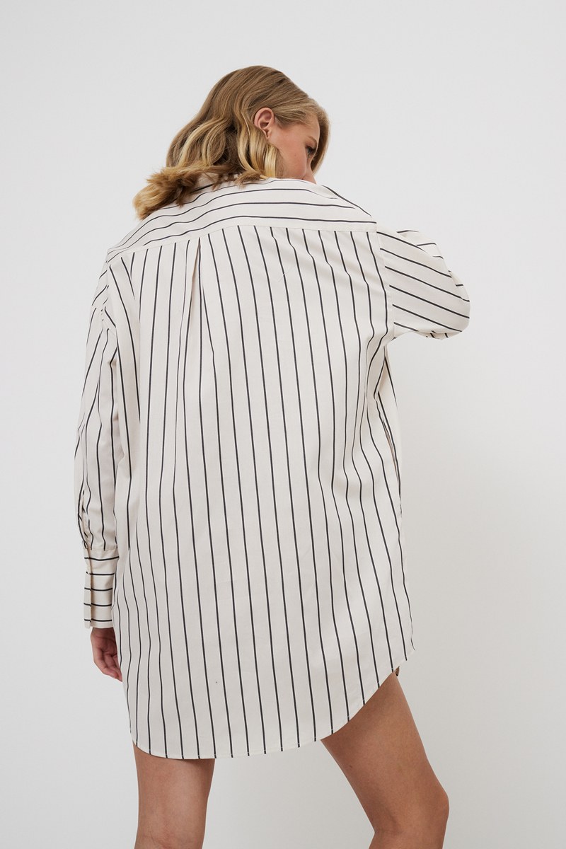Представляем вам ночную сорочку Seraphine, в которой комфорт сочетается с неподвластной времени элегантностью в каждой строчке. Сорочка изготовлена из лёгкого хлопка, а кремовый цвет с полосками создаёт узор, излучающий классическое очарование. Сорочка с длинными рукавами на пуговицах, которое сидит на фигуре как влитое. Классический воротник придаёт изысканность, а закруглённый низ создаёт свободный силуэт, который движется вместе с вами. Удобные боковые карманы — это стильно и практично. Ночная сорочка Seraphine создана для комфорта.