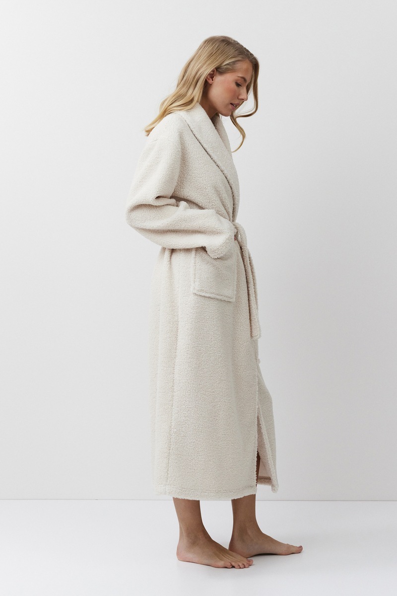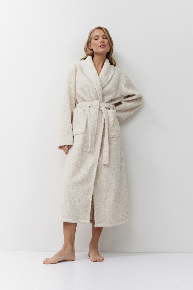 Расслабьтесь с комфортом в мягком халате SIMONE. Теплый халат с поясом, длинный. Изготовлен из плотной ткани напоминающую "барашек". Имеются два накладный кармана. Окутает и согреет вас в холодное время года. В нем вам будет тепло и уютно!