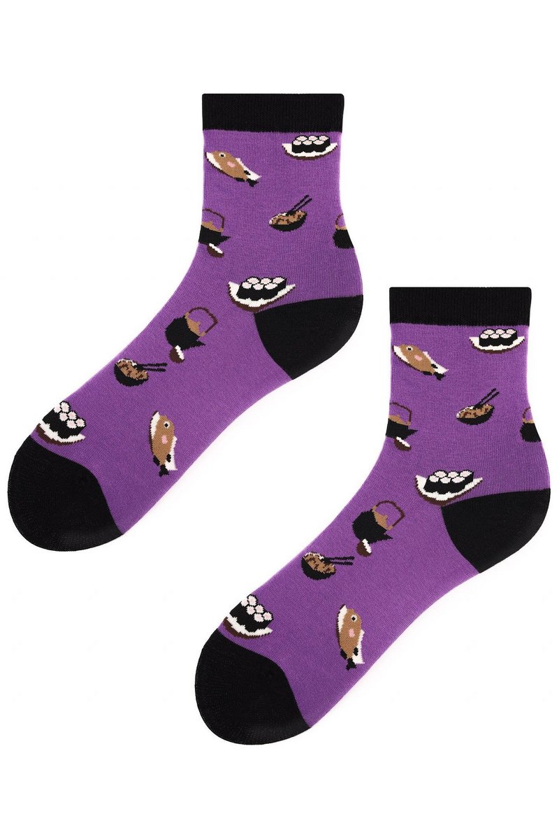 Женские носки с изображением суши. Изготовлены из натурального хлопка высшего качества. Плоский и мягкий шов обеспечит комфорт при ношении.