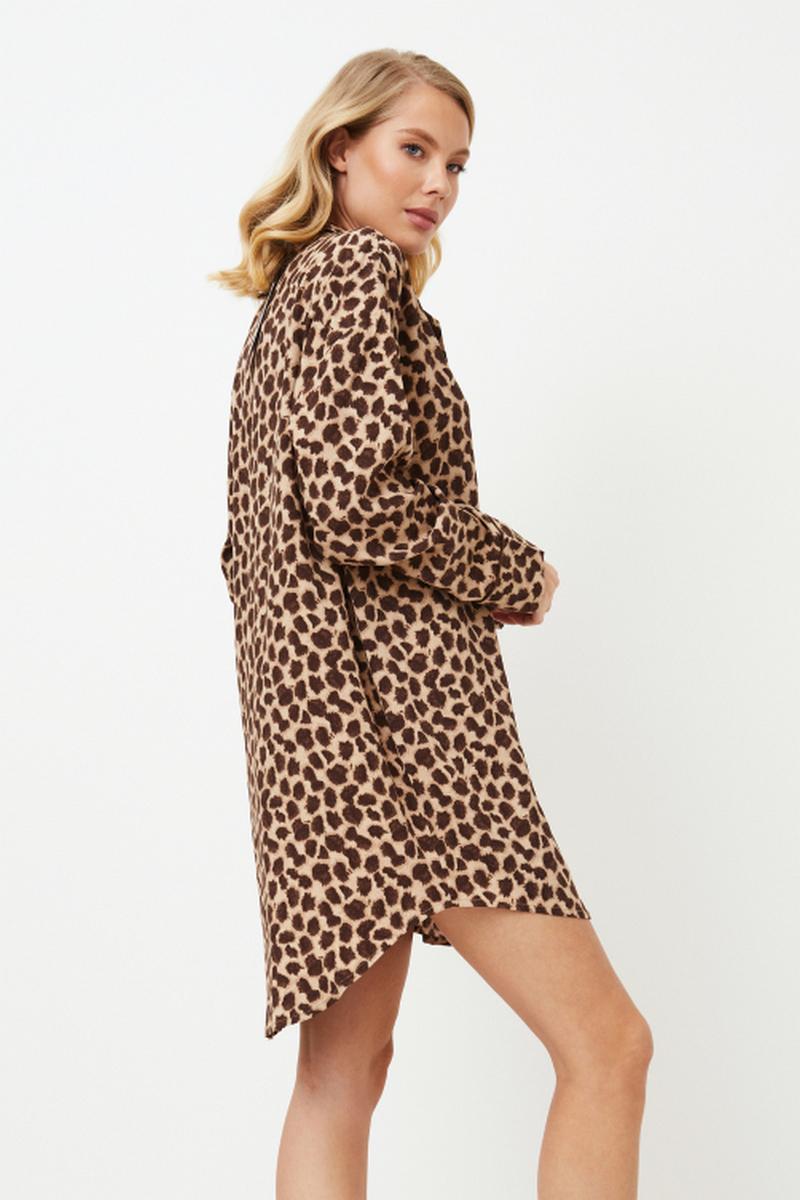Представляем ночную рубашку Susan, смелый леопардовый принт которой внесет изюминку в ваш повседневный образ. Платье выполнено из дышащей вискозы и декорировано эффектным леопардовым принтом. Ночная рубашка на пуговицах с длинными рукавами, рубашечным воротником и коричневой окантовкой на манжетах. Наденьте ночную рубашку Susan и позвольте удобной ткани и очаровательному дизайну унести вас в мир романтики и расслабления. Ткань - вискоза.
