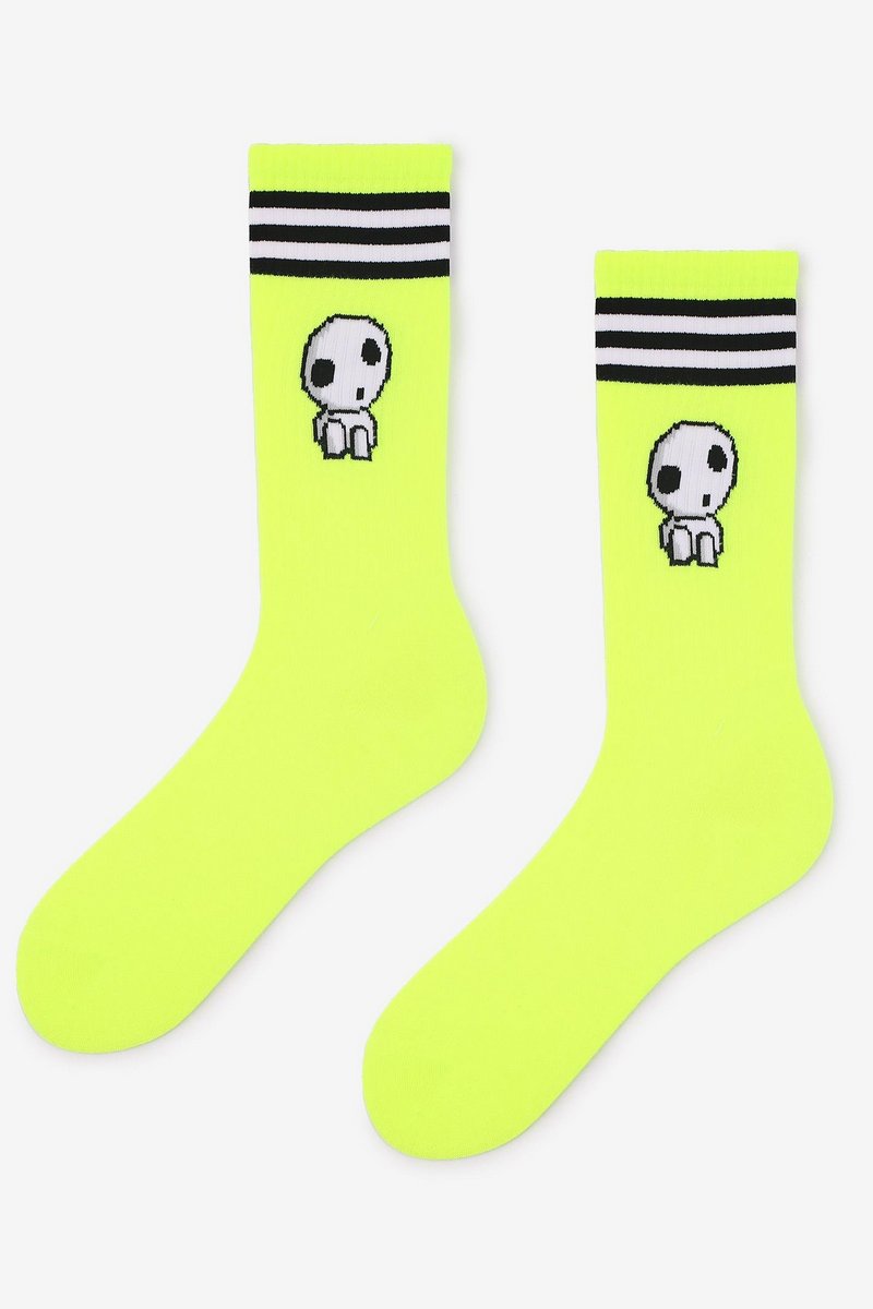 Высокие женские носки с ребристой полосой и рисунком спрайта. Изготовлены из натурального хлопка высшего качества. Плоский и мягкий шов обеспечит комфорт при ношении.