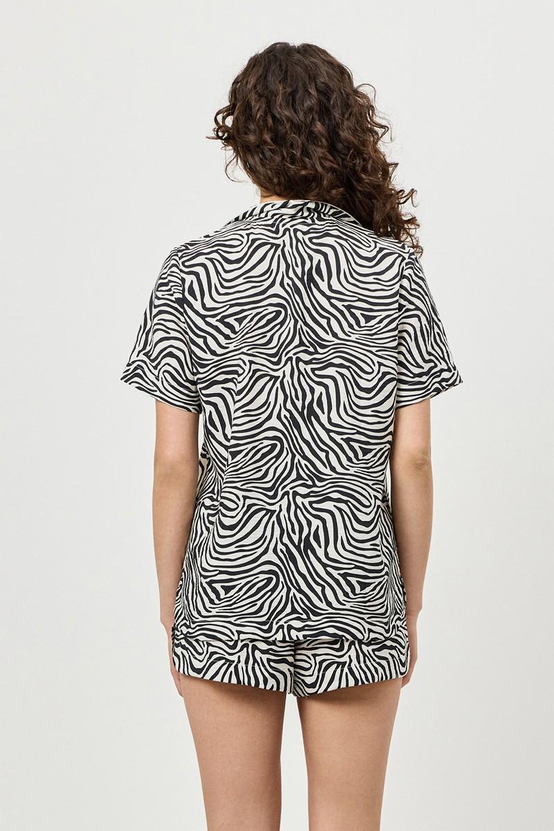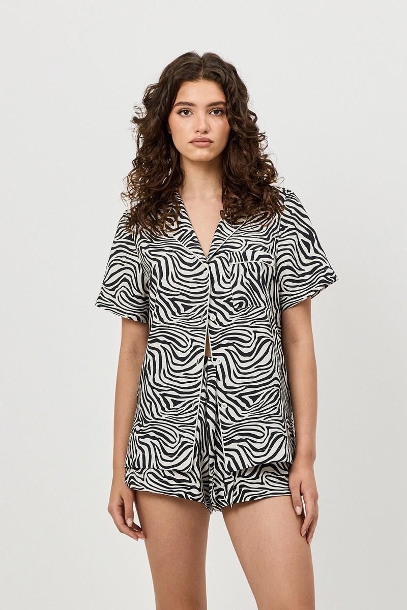 Пижама женская с шортами SWAY для вашего ночного комфорта. Пижама выполнена из вискозы с добавлением нейлона. Эффект слегка сжатой ткани. Рубашка на пуговицах, с короткими рукавами и отложным воротником. Окантовка украшает изделие. Шорты свободные с закругленными краями, эластичный пояс с кулиской. Расслабьтесь с максимальным комфортом и стилем в пижаме SWAY.