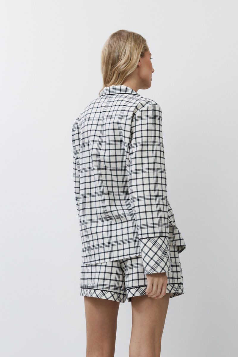 Пижама женская с шортами TERRA для вашего ночного комфорта. Пижама изготовлена из фланелевого хлопка с принтом в клетку. Рубашка на пуговицах, с длинными рукавами, отложным воротником и нагрудным карманом. Окантовка дополняет и украшает комплект. Шорты свободные, с эластичным поясом с завязкой. Расслабьтесь с максимальным комфортом и стилем в пижаме TERRA.