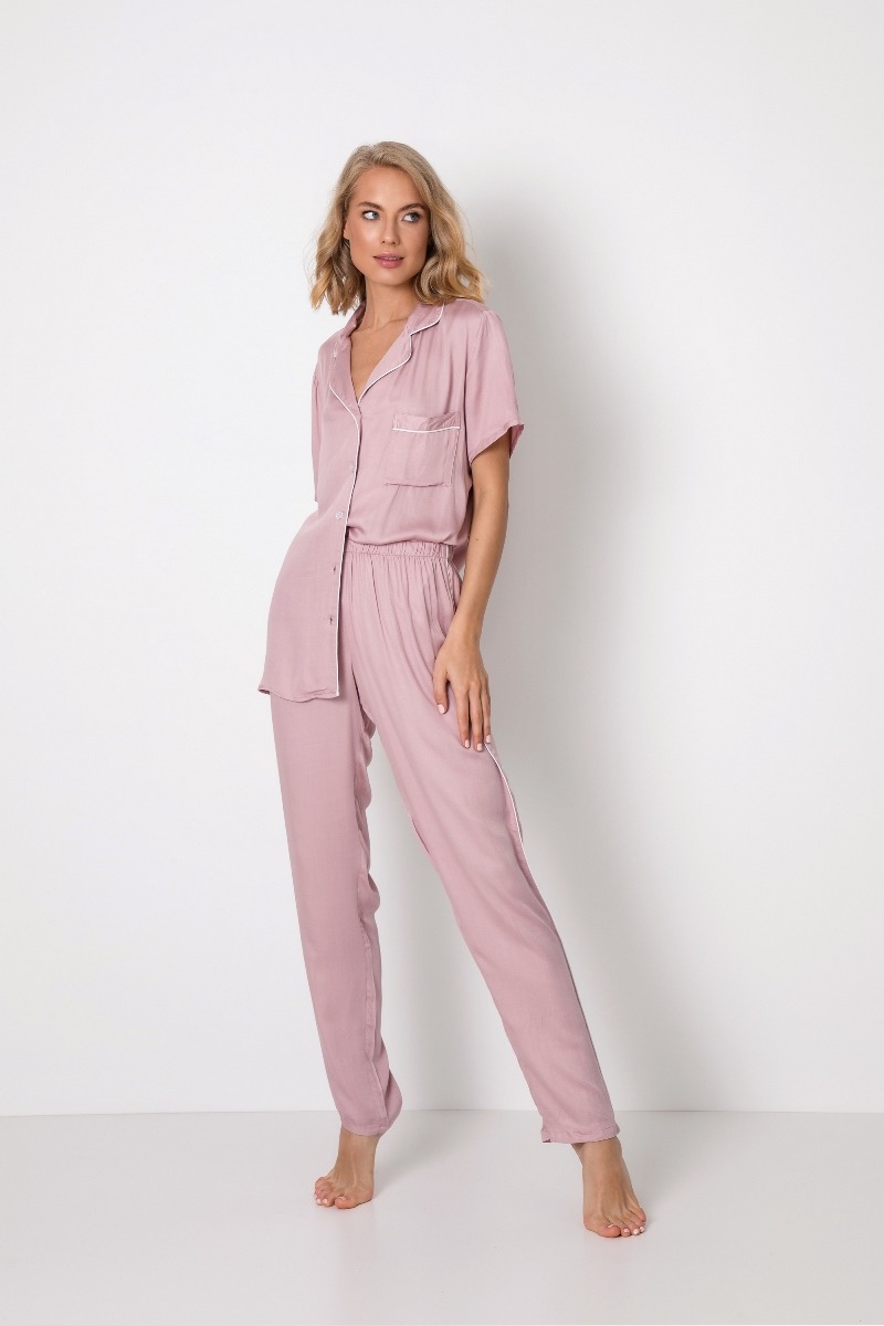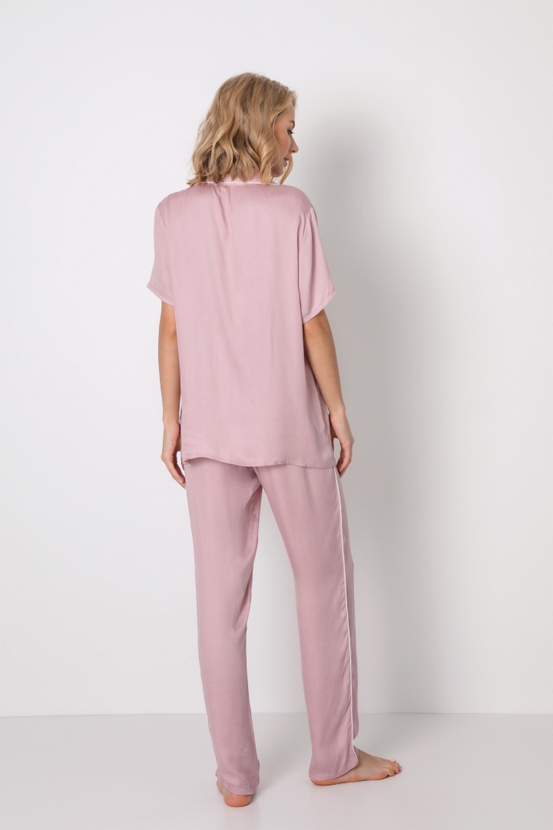 Когда розовый - это все, что вам нужно, пижама Tianna здесь для вас! Пижама рубашечного типа в классическом стиле изготовлена из сверхмягкой блестящей вискозы. Воротник и нагрудный карман украшены кантом, а брюки средней посадки имеют элемент канта сбоку.
