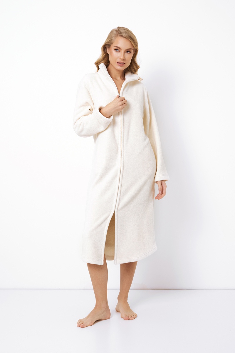 Абсолютная нежность… Так вы себя почувствуете в мягком и светлом халате Тони. Халат сделан из очень мягкой и слегка пушистой ткани. Халат застегивается на молнию в виде сердца, а дополнен боковыми карманами.