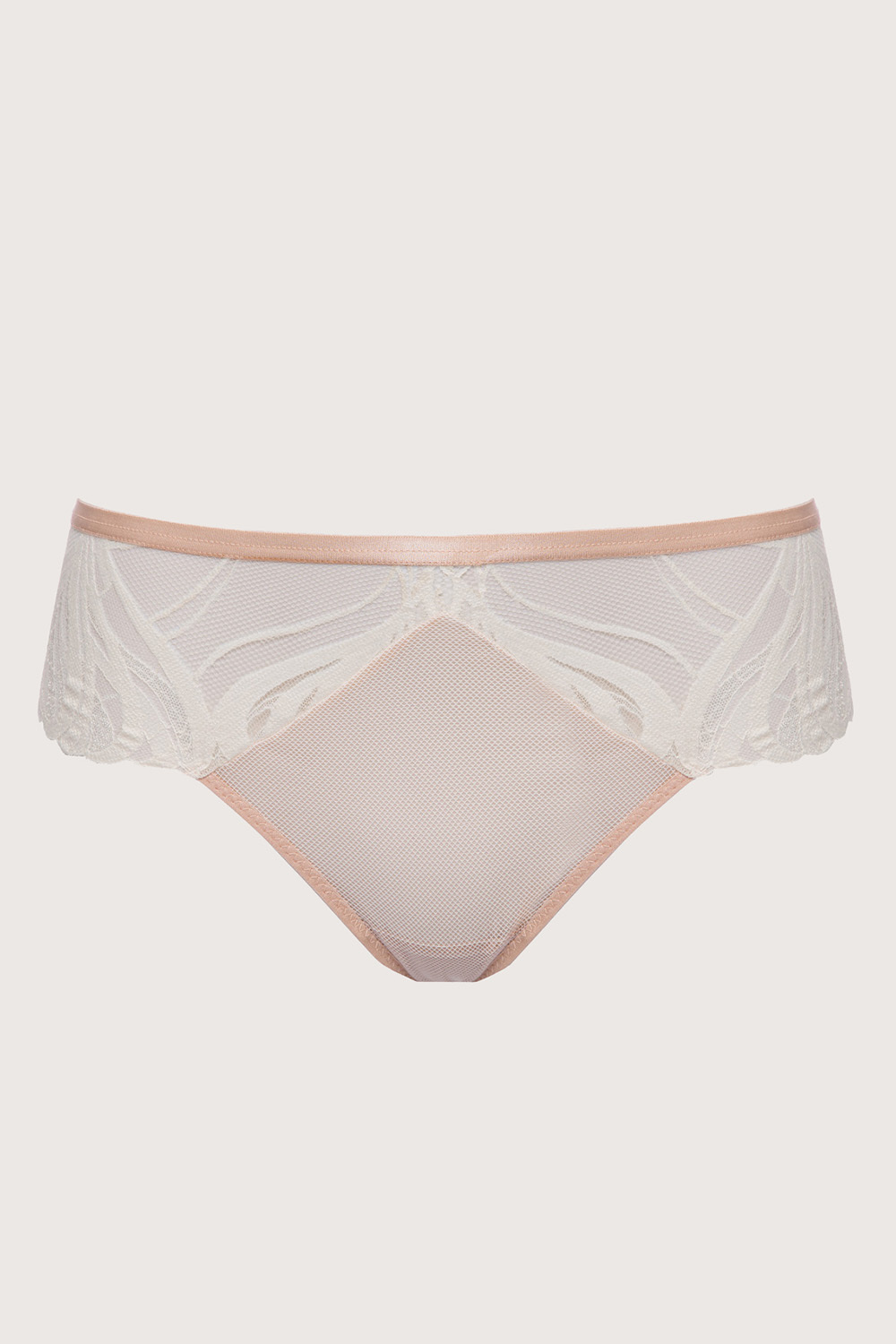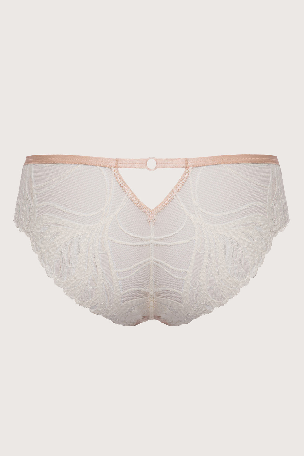 Кружевные трусики-бразилиана Creme Brulee телесного цвета. Ластовица хлопковая.