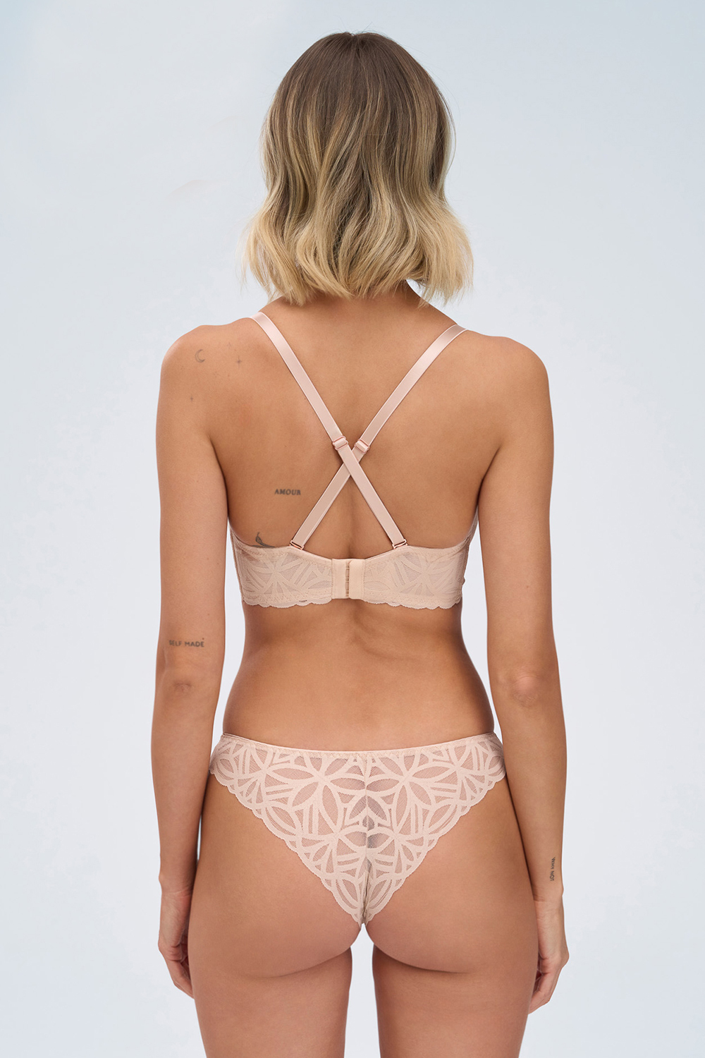 Кружевные трусики-бразилиана Sugar Dune телесного цвета. Ластовица хлопковая.