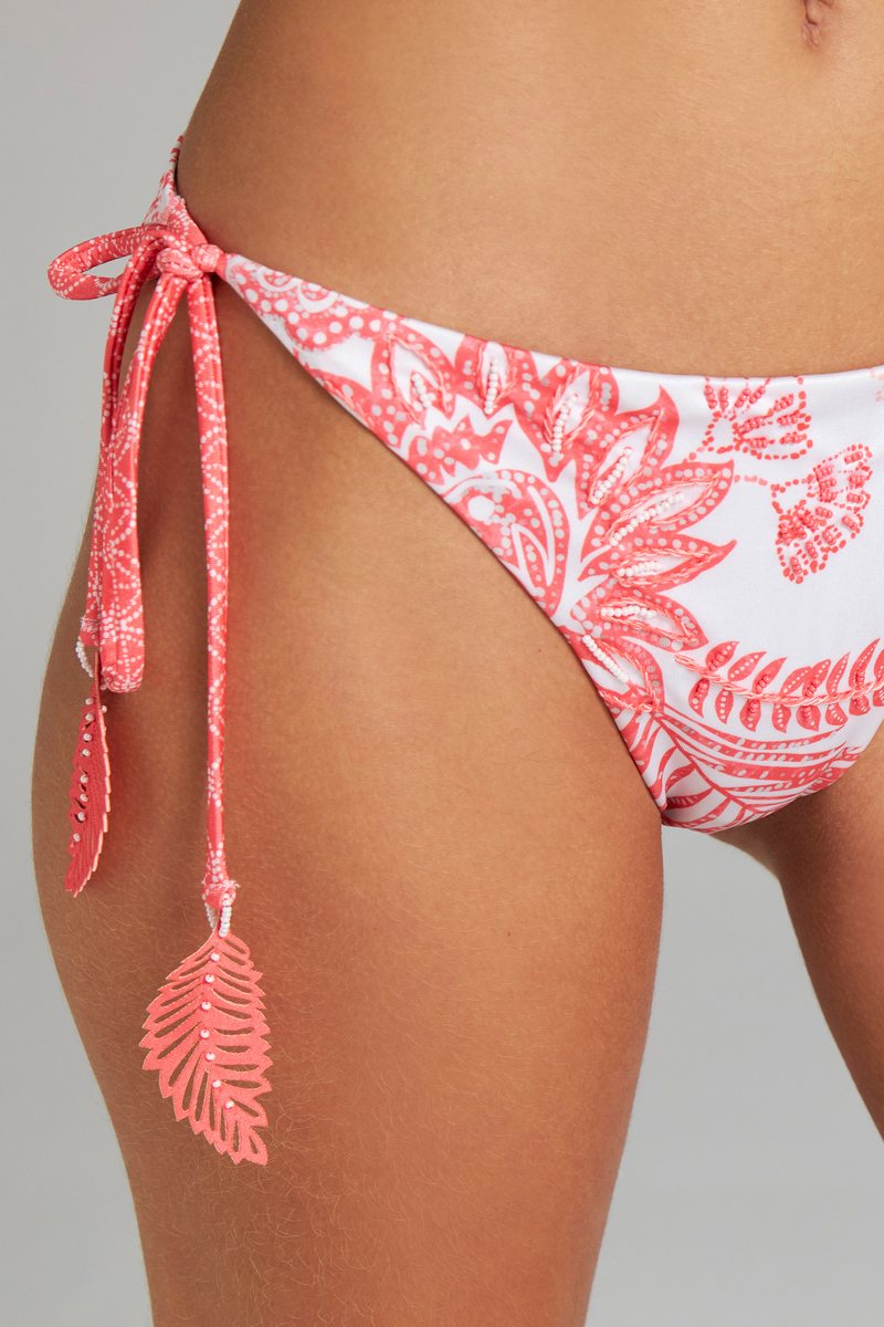 Трусы купальные AMERICAN FIT от колумбийского бренда Cosita Linda. Модель выполнена из высококачественной ткани с эксклюзивными дизайнерскими аксессуарами ручной работы, на подкладе. Специальная вышивка на изделии из биссера и очаровательные перышки на завязках. Бренд уделяет большое внимание защите природы, поэтому все свои изделия производит из современной переработанной эко ткани по технологии Less Water.