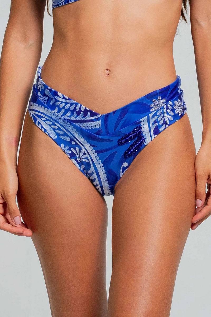 Трусы купальные от колумбийского бренда Cosita Linda. Модель с V-образным вырезом созданная для того, чтобы подчеркивать вашу привлекательность и элегантность, украшена вышивкой ручной работы. Кокетливая модель в стиле латиноамериканского кроя с искусной отделкой. Трусы на подкладе.