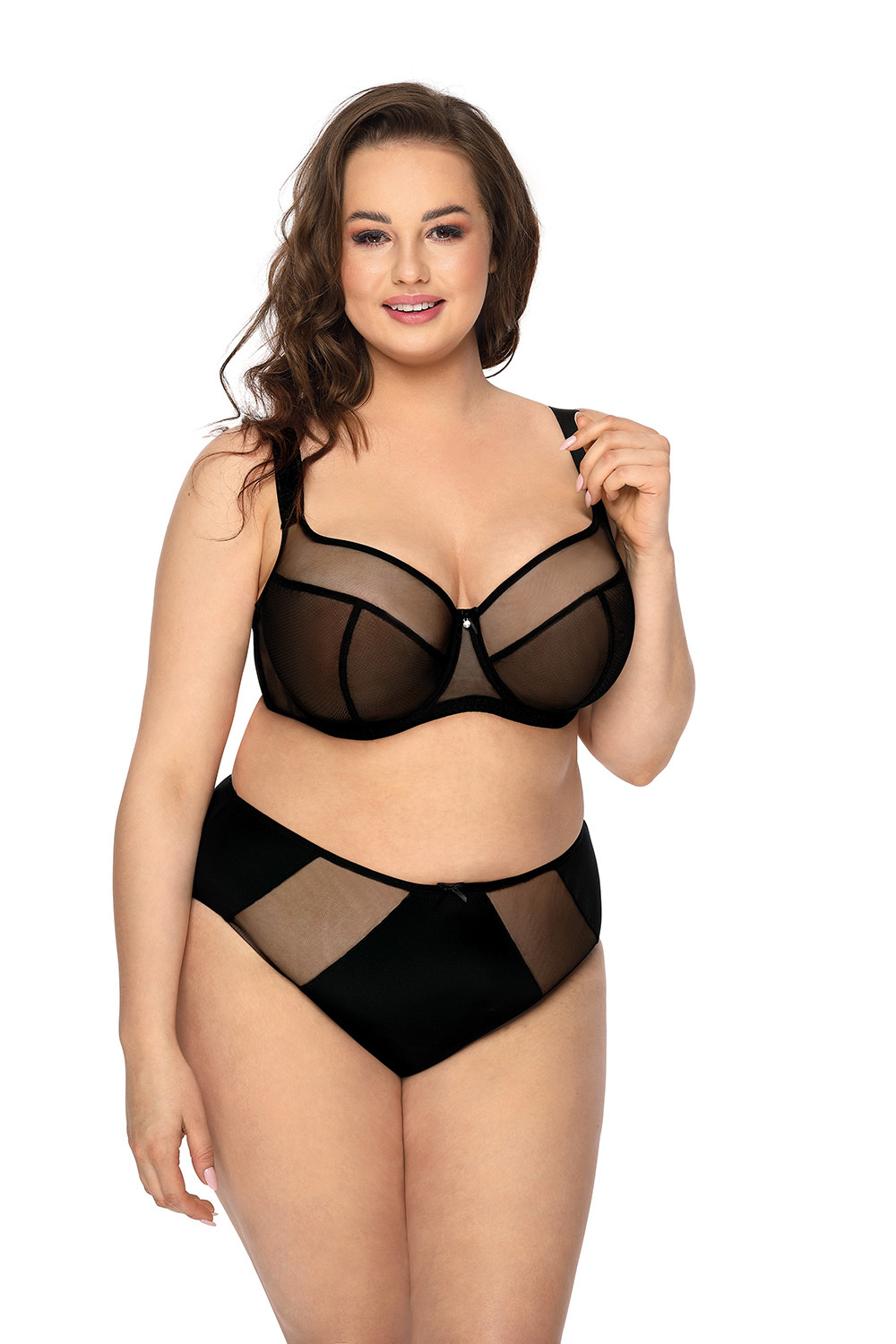 Классические черные трусы Aggie. Перед и спинка из эластичной микрофибры. Сетчатые вставки спереди и по бокам. Небольшой бант посередине. Хлопковая ластовица.