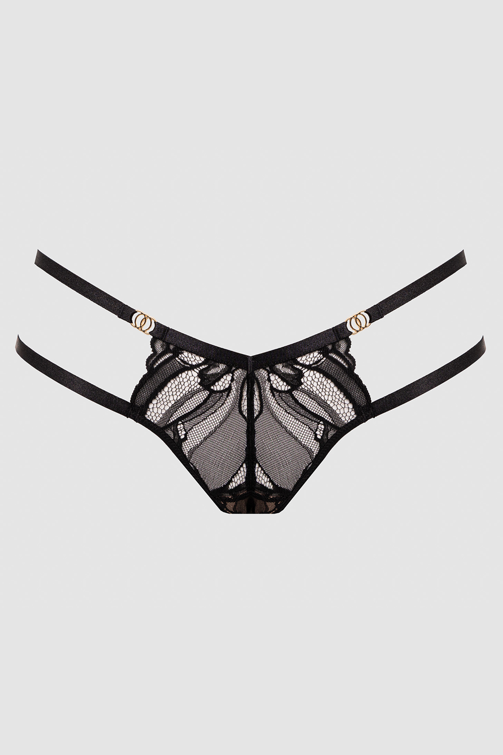 Кружевные трусики-стринги The Icon средней посадки. Выполнены из эластичной сетки и ажурного кружева. Ластовица хлопковая.