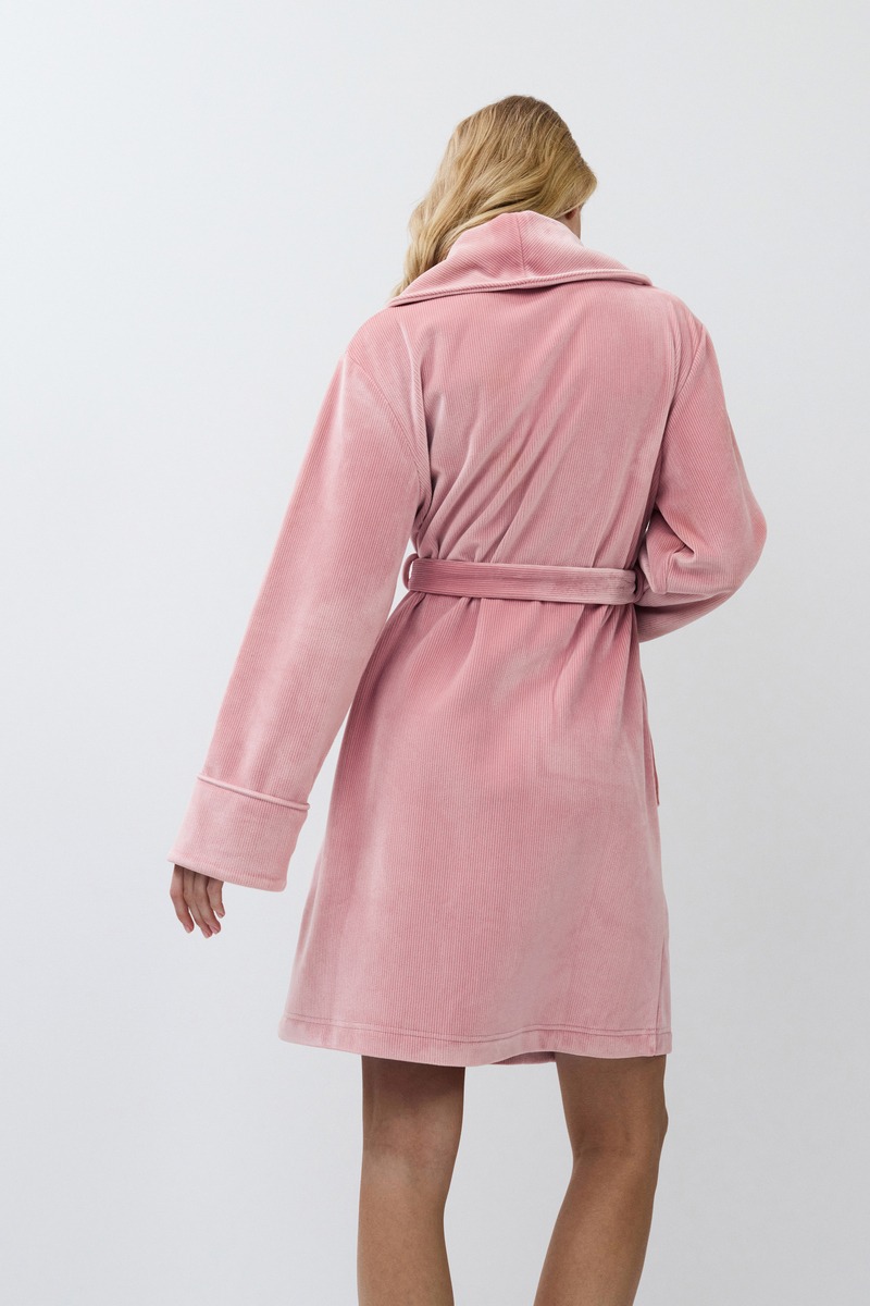 Расслабьтесь с комфортом в мягком халате VEA. Халат с поясом. Длина до колен. Изготовлен из мягкой приятной телу текстурированной ткани в полоску. Имеются два накладный кармана. Окутает и согреет вас в холодное время года. В нем вам будет тепло и уютно!