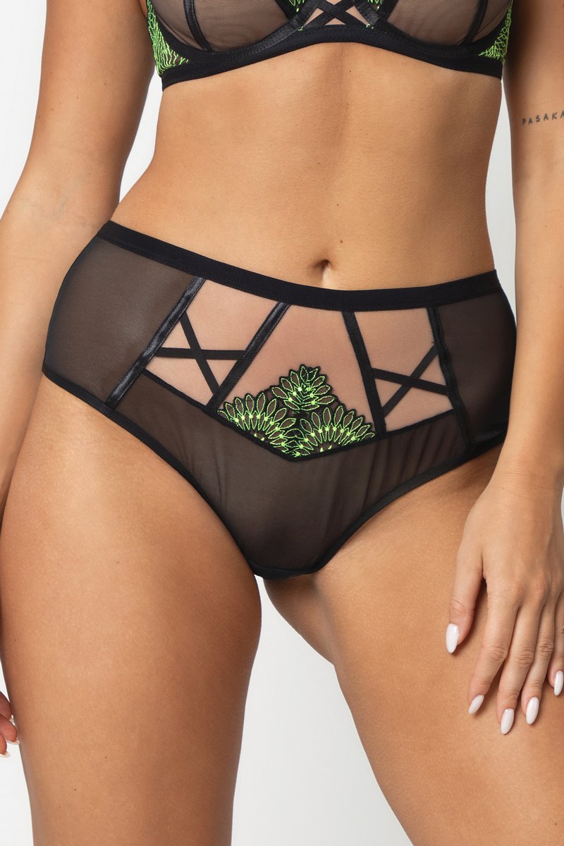 Трусы с высокой посадкой VIOLA от европейского производителя Subtille. Модель выполнена из нежного микротюля и яркого цветочного кружева, задняя часть - из двойного микротюля. Хлопковая ластовица.