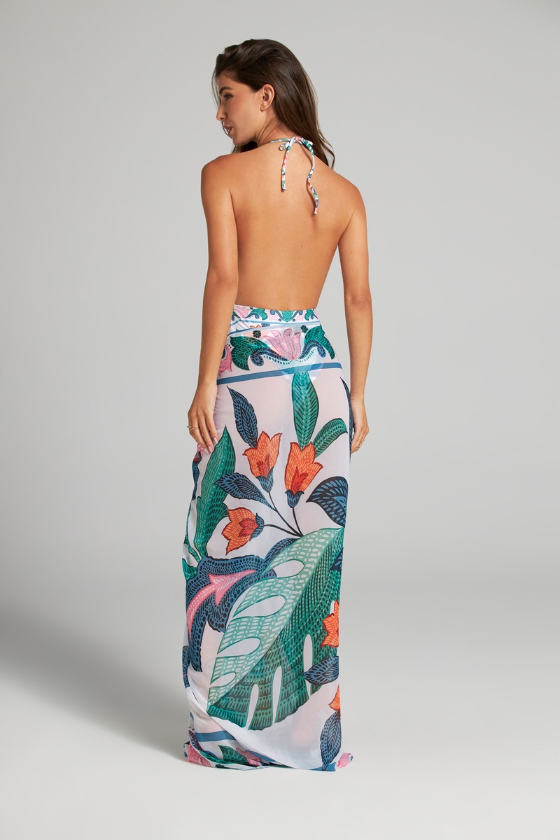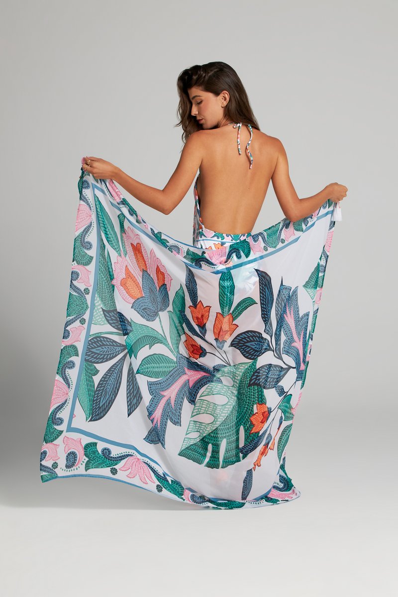 Роскошное парое от колумбийского бренда Cosita Linda. Модель выполнена из высококачественной ткани с эксклюзивными дизайнерскими аксессуарами ручной работы. Это универсальное парео с потрясающим цветочным принтом идеально подходит для того, чтобы добавить нотку элегантности в любой образ на пляже или у бассейна, на завязках очаровательные кисточки. Бренд уделяет большое внимание защите природы, поэтому все свои изделия производит из современной переработанной эко ткани по технологии Less Water.
