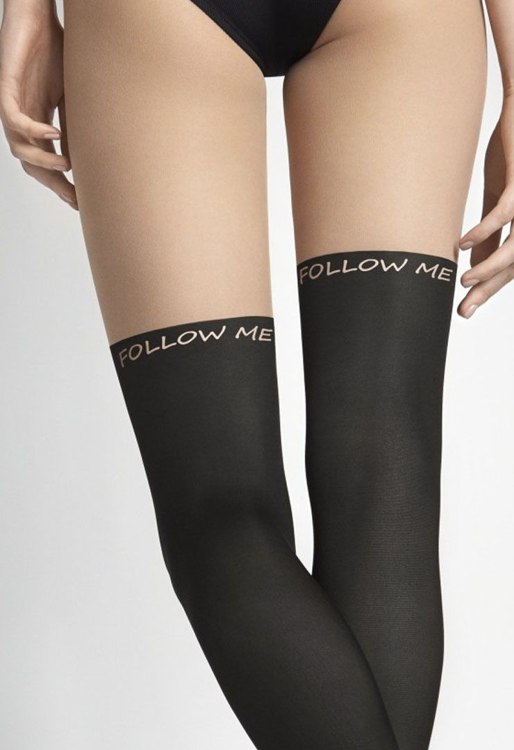 Женские фантазийные колготки с имитацией чулок и надписью.