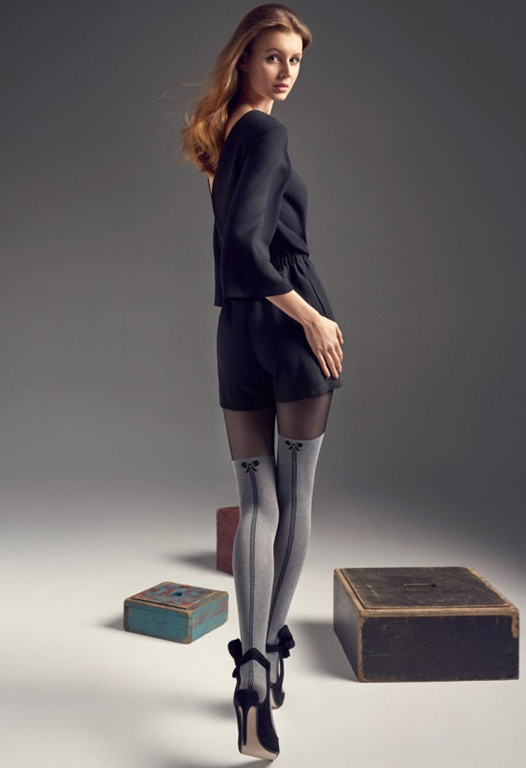Фантазийные колготки - имитация чулок с оригинальным швом сзади. Верхняя часть плотностью 20 den, нижняя – из 3D микрофибры 80 den.